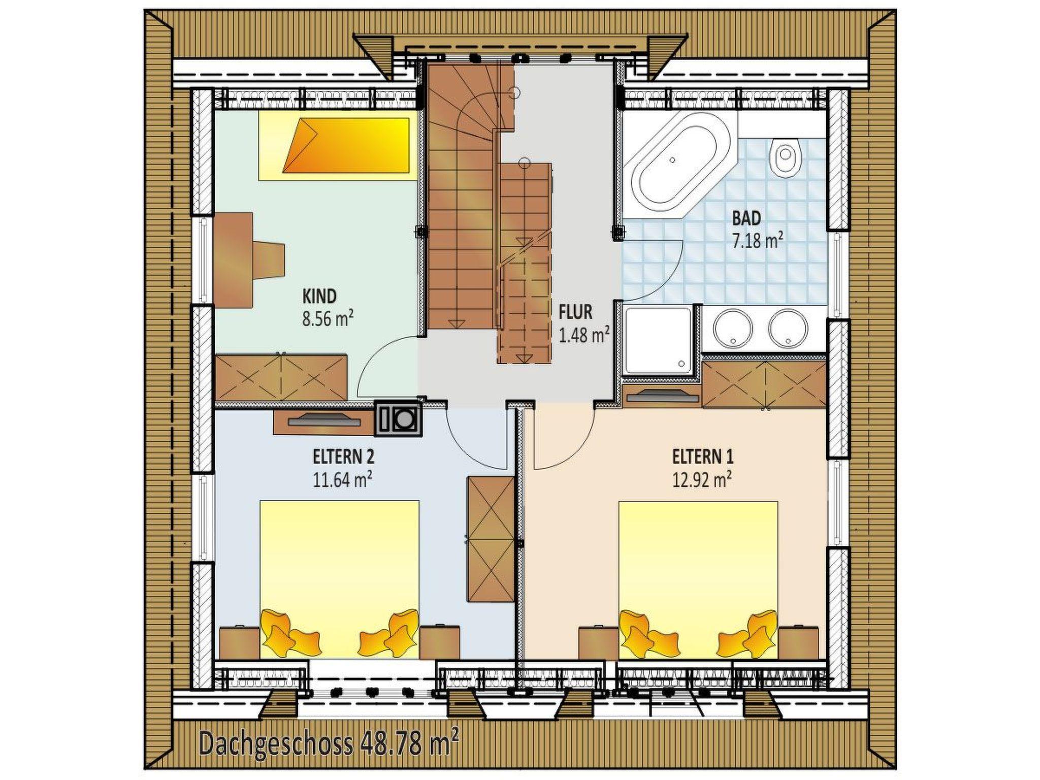 Die Innenausstattung lässt keine Wünsche offen: Im Erdgeschoss begrüßt Sie ein weitläufiger Wohn- und Essbereich mit einer offenen Küche, die zum gemeinsamen Kochen und Verweilen einlädt. Für Ihren Komfort sorgen zwei qualitative Bäder, eins im Erdgeschoss und ein weiteres im Dachgeschoss, sowie eine Sauna, die zur Entspannung nach einem langen Tag am Strand einlädt. Die Schlafräume verteilen sich geschickt über das Obergeschoss mit drei Schlafzimmern, die über insgesamt fünf Betten für Erwachsene verfügen, und den gemütlichen Spitzboden, der einen zusätzlichen Wohn-/Schlafbereich mit drei Betten bietet. Zur weiteren Ausstattung gehört ein behaglicher Kamin, ein Kinderhochstuhl, Radio, sowie LCD-Fernseher im Wohnzimmer und den Schlafzimmern.