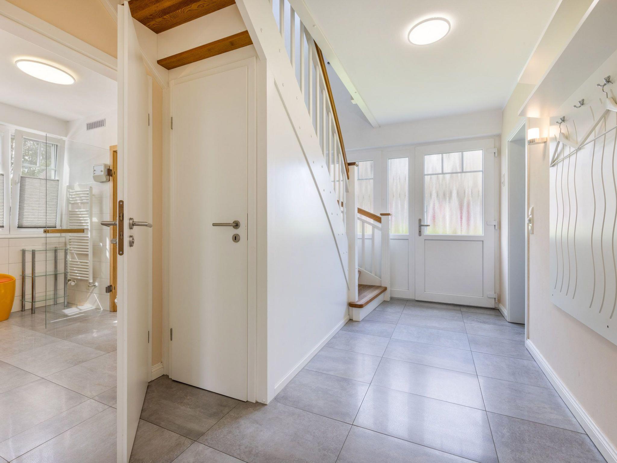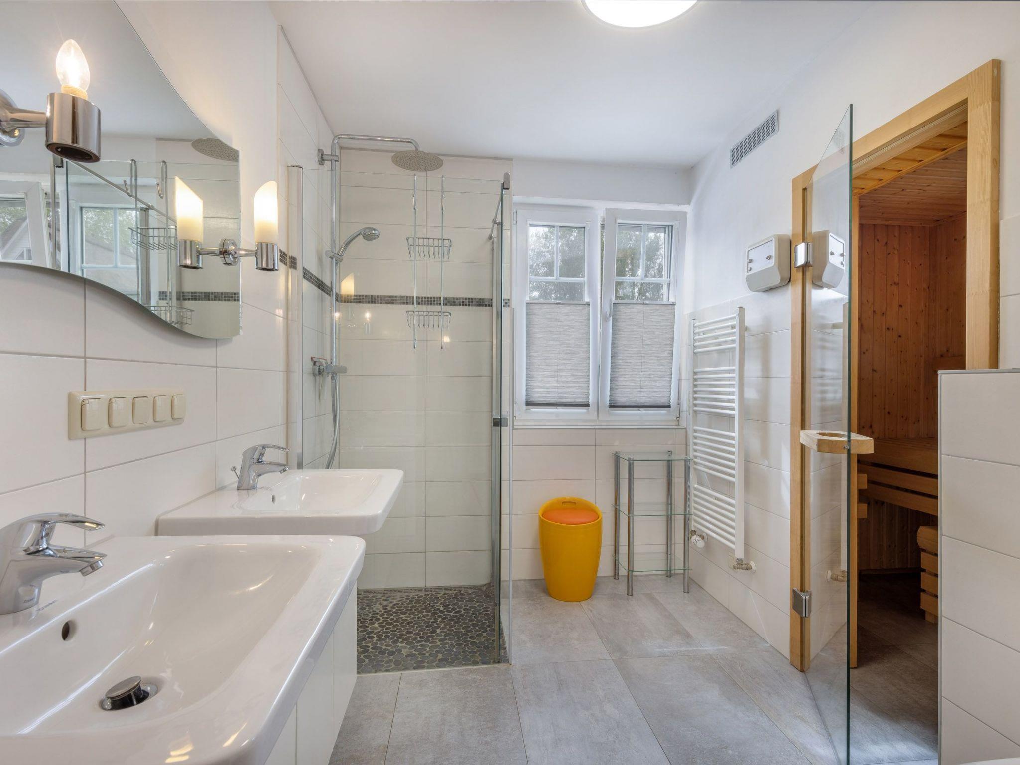 Im Erdgeschoss erwartet Sie eine vollständig ausgestattete große Küche mit allem, was Sie für einen angenehmen Aufenthalt benötigen. Der Ess- und Wohnbereich bietet eine hochwertige Ausstattung mit einem Kaminofen, einem großen LED-Fernseher, einem BluRay-Player, einer Musikanlage und vielem mehr. Ein schönes Badezimmer mit Doppelwaschbecken und Handtuchheizkörper vervollständigt das Erdgeschoss.