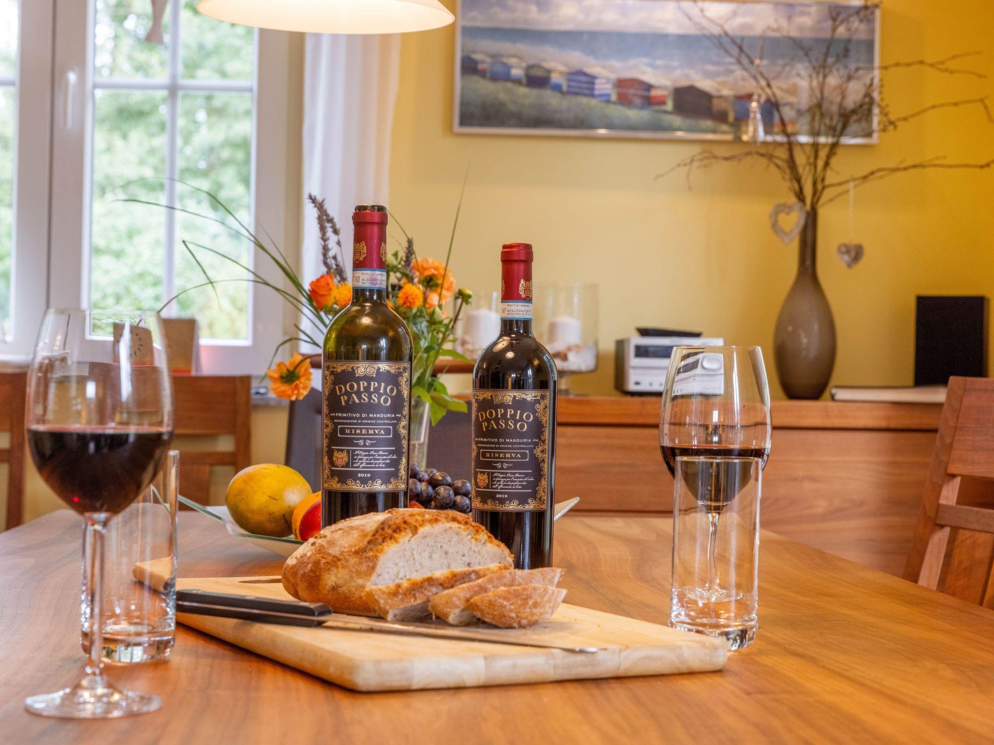Freuen Sie sich auf das top ausgestattete Reetdach-Ferienhaus. Atmen Sie frische Ostseeluft ein und erholen Sie sich in dem großzügigen und geschmackvoll eingerichteten Reetdachhaus mit 134 qm Wohnfläche. Es bietet ausreichend Platz für acht Erwachsene Personen. Das Erdgeschoss des Reetdach-Ferienhauses bietet Ihnen ein sehr geschmackvoll eingerichtetes Wohnzimmer mit großer Wohnlandschaft, modernen Möbeln und großzügigem Essbereich. Ein Kaminofen für kuschelige Abende, ebenso ein großen LCD- Fernseher und ein Blu-Ray-System mit Radio. Eine moderne vollständig ausgestattete Küche mit integrierter Mikrowelle im Backofen, Ceranfeld, Geschirrspüler, große Kühl-Gefrier-Kombination und vielen Accessoires wie z.B. einen Kaffeevollautomat für Ihren Cappuccino oder Espresso, Kaffeemaschine, Sandwichmaker, Waffeleisen, Kindergeschirr, Toaster, Raclette und vieles mehr. Nach einem ausgiebigen Strandtag können Sie als Highlight zur völligen Entspannung einen Wellnessabend in der Sauna verbringen. Die Badezimmer im Erdgeschoss und Obergeschoss sind eingerichtet mit einem modernen Doppelwaschbecken, ebenerdiger Dusche mit Glasabtrennung, WC und Fön. Ebenfalls im Erdgeschoss befindet sich der Hauswirtschaftraum mit Waschmaschine und Trockner, Wäscheständer, Bügelbrett, Bügeleisen und Verbrauchsmaterialien. Die Fenster und Türen haben elektrische Rollläden sowie Insektenschutzgitter. Über eine geschmackvolle Eichenholztreppe gelangen Sie in das Obergeschoss, wo sich drei Schlafzimmer befinden. Zwei schöne im Landhausstil eingerichtete Schlafzimmer (zwei x Doppelbett) mit ausgezeichneten Matratzen und genügend Schränken für Ihre Garderobe, LCD-Fernseher, Radioweckern und ein Schlafzimmer mit Schreibtisch und 1.40m breitem Bett. Selbstverständlich befinden sich auch im Obergeschoss elektrische Rollläden und Insektenschutzgitter. Das ausgebaute Dachgeschoss verfügt über eine Treppe mit Treppenschutzgitter. Hier finden Sie einen großzügig hellen und freundlich ausgebauten Wohn- und Schlafbereich mit auf der einen Seite zwei Einzelbetten und ausreichend Schränken etc. Und auf der gegenüber liegenden Seite eine großzügige Wohnlandschaft, welche zum Relaxen und Lesen einlädt. Weiterhin ist der Spitzboden ebenfalls mit einem Fernseher, einer kleinen Bibliothek für Kinder, Kinderspielen etc. und modernen Verdunklungsgardinen ausgestattet. Natürlich wurde auch an kleinere Kinder gedacht. Das Ferienhaus verfügt über 2 Kinderreisebetten mit Wickelauflage,Hochstuhl, Kinderbücher, Gesellschaftsspiele etc. und selbstverständlich einen Bollerwagen mit Strandspielzeug. Für die Erwachsenen gibt es ebenfalls eine Bibliothek.