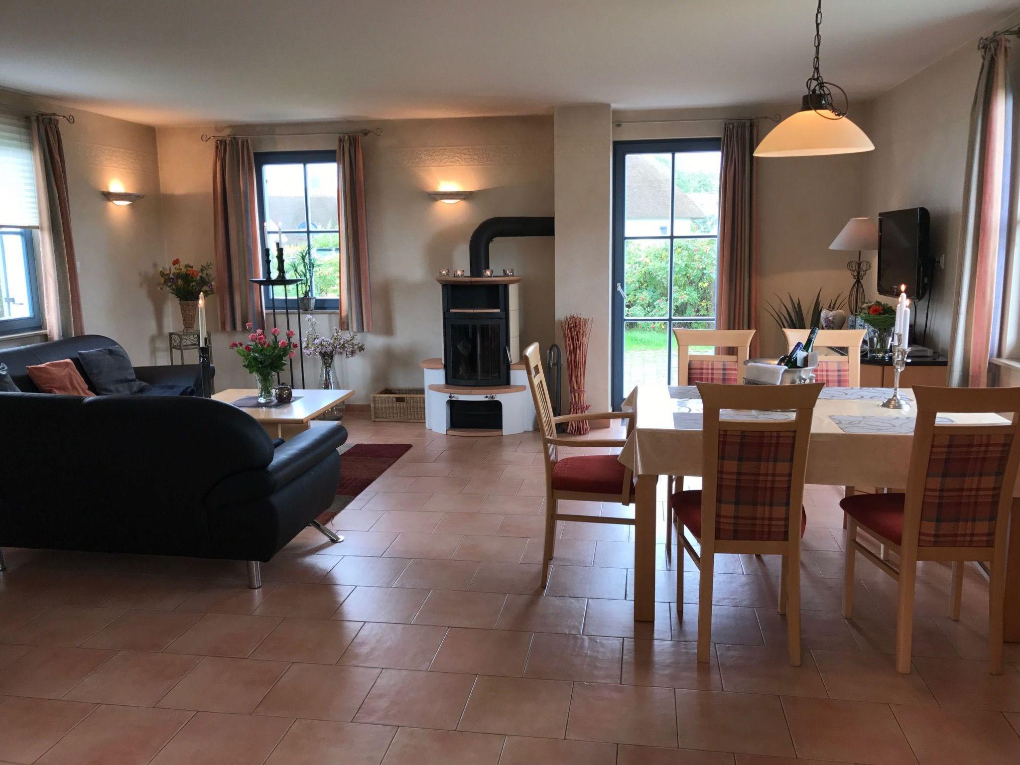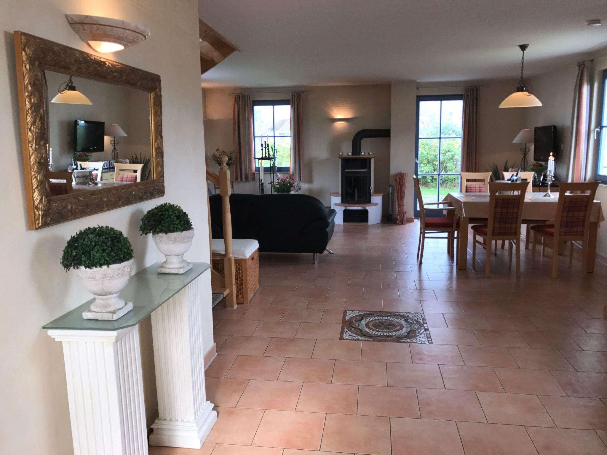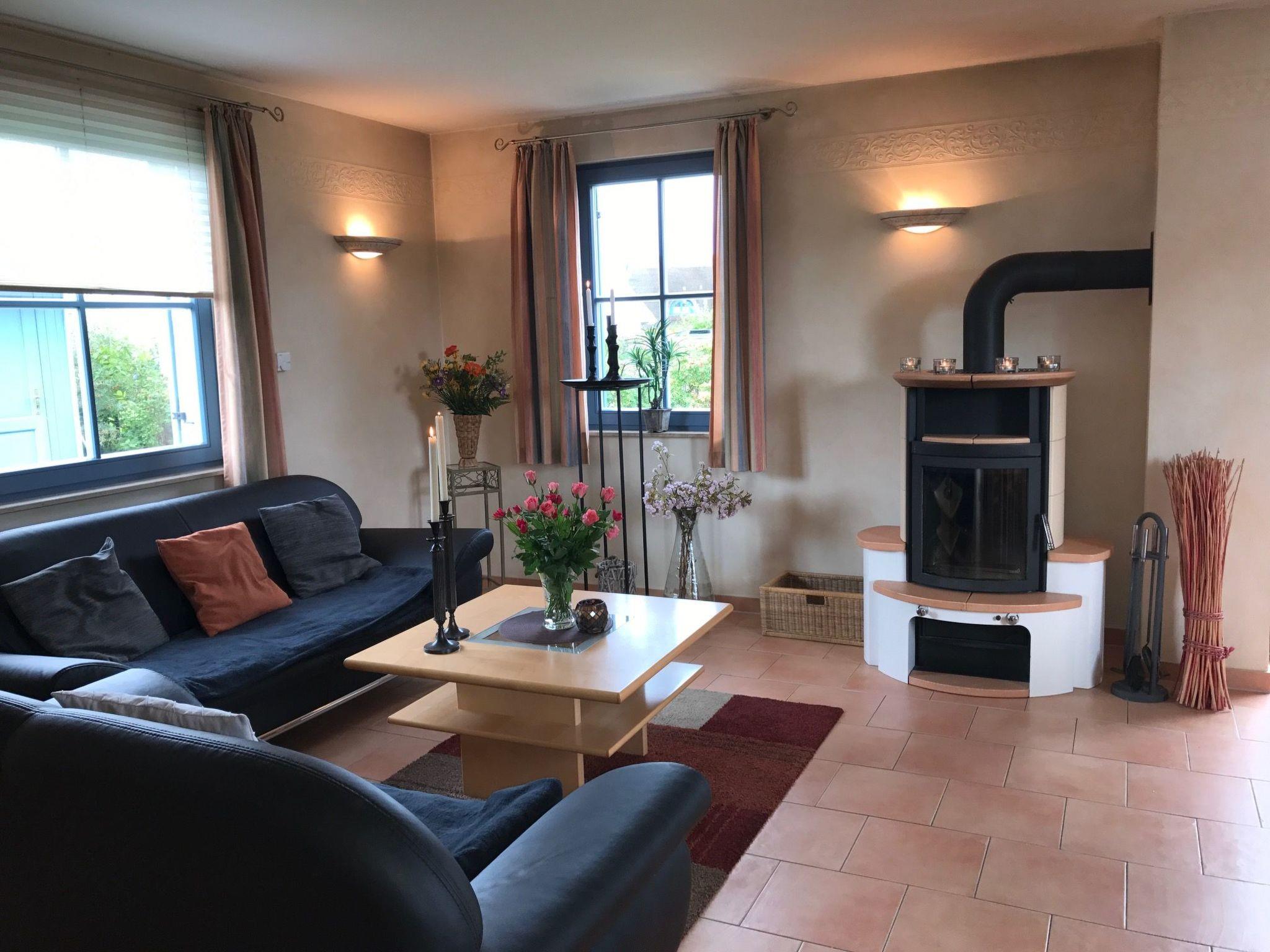 Sauna, Waschmaschine, Kamin, zwei Bäder, Terrasse mit Strandkorb und Terrassenmöbeln, zwei Schlafzimmer mit jeweils einem Doppelbett, Waschmaschine. (Münzautomat) 2 Pkw-Stellplätze. Das Grundstück ist eingefriedet mit einem Friesenwall und Bauernrosen, WLAN.
