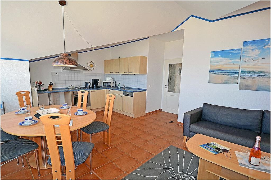 Erholungsort Glowe, 2. Etage, direkt am Ostseestrand mit Meerblick Wohn- und Esszimmer: Sitzecke und bequeme Couch, TV/ Sat (Flatscreen), Radio/ CD, komplett ausgestattete offene Einbauküche mit 4- Plattenherd, Backofen, Kühlschrank, Mikrowelle, Toaster, Wasserkocher, Kaffeemaschine, Geschirrspüler, Essecke und diversen Elektrogeräten, 1. Schlafzimmer mit Doppelbett, großem Kleiderschrank und TV, 2. Schlafzimmer mit Etagenbett und Einzelbett, Bad mit Dusche/WC, Fön und Fußbodenheizung, Balkon mit Gartenmöbel, Grillmöglichkeit besteht (Grillplatz) “komfortables Wohnen mit Blick zur Ostsee” Direkter Promenaden- / Strandzugang, PKW-Stellplatz direkt am Haus, ein Kinderreisebett vorhanden, Einkaufsmöglichkeiten und Restaurants in unmittelbarer Nähe, ca 200 m zum Jachthafen Glowe, ca. 100m zum Bäcker, Fahrradabstellraum, Haustiere nicht erwünscht