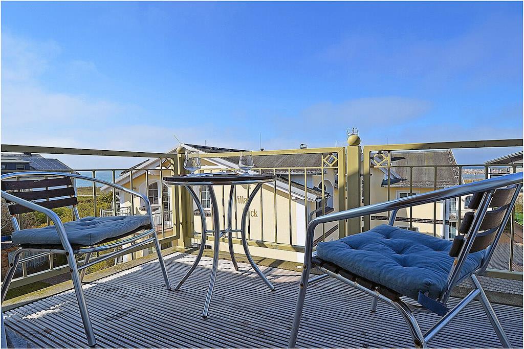 Die Villa Rosa 5 bietet komfortables Wohnen mit direktem Meerblick und Strandzugang in Glowe.