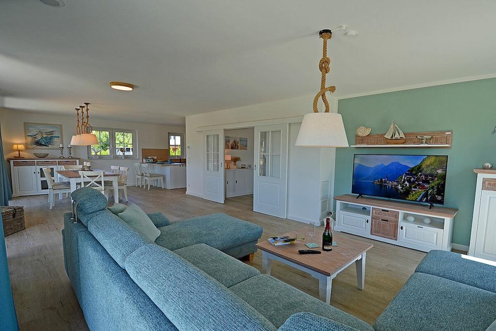 Modernes Ferienhaus in Glowe mit Sauna, Gaming Room und großem Garten für entspannte Urlaubstage.