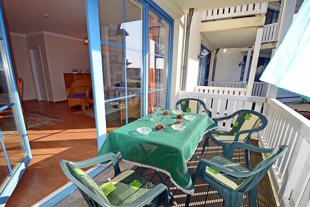 Gemütliche Ferienwohnung in Glowe mit Balkon, Schwimmbecken und moderner Ausstattung für erholsame Tage.