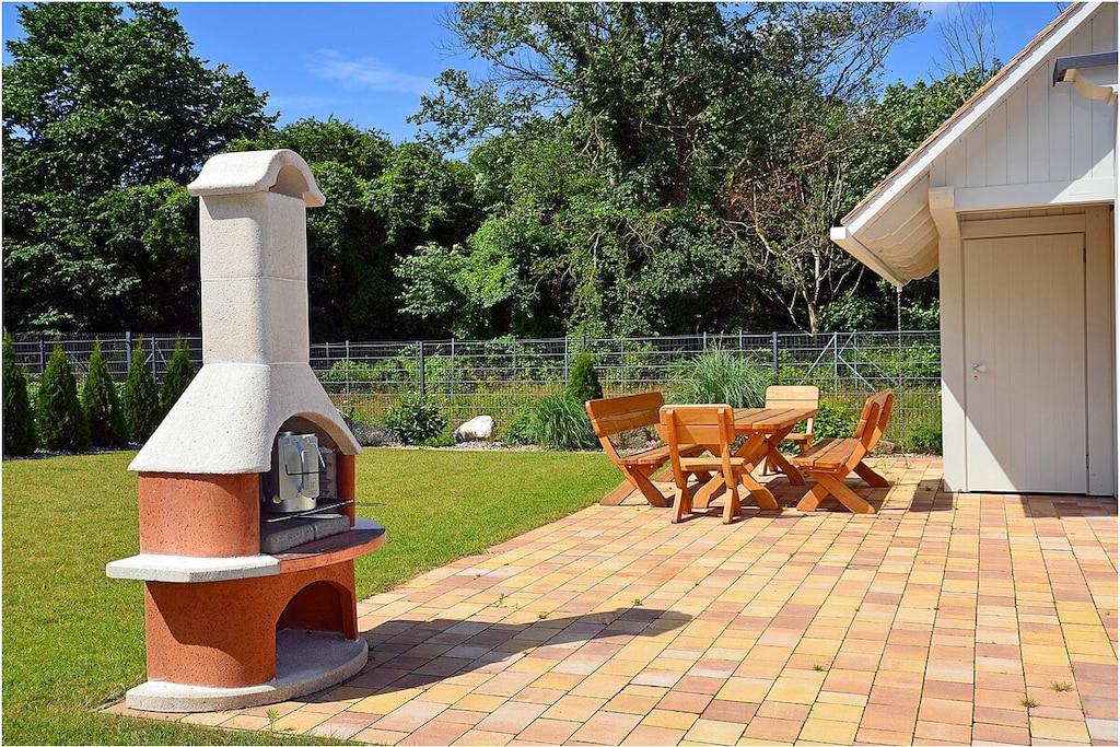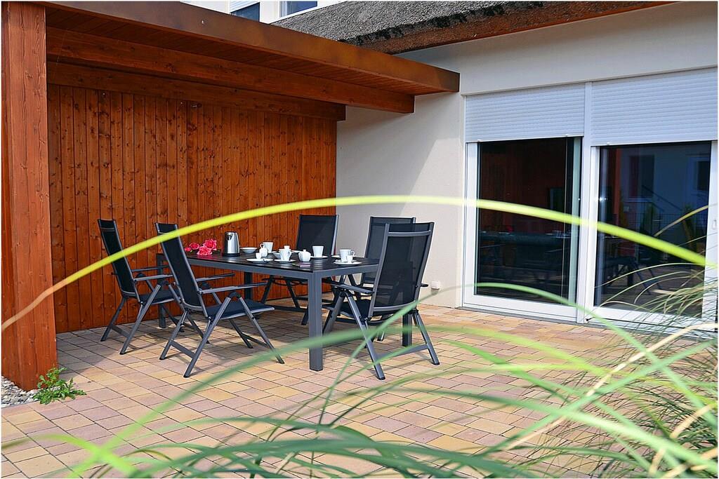 Modernes, reetgedecktes Ferienhaus mit WLAN, Terrasse und Billardtisch in Glowe auf Rügen.