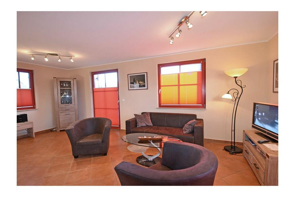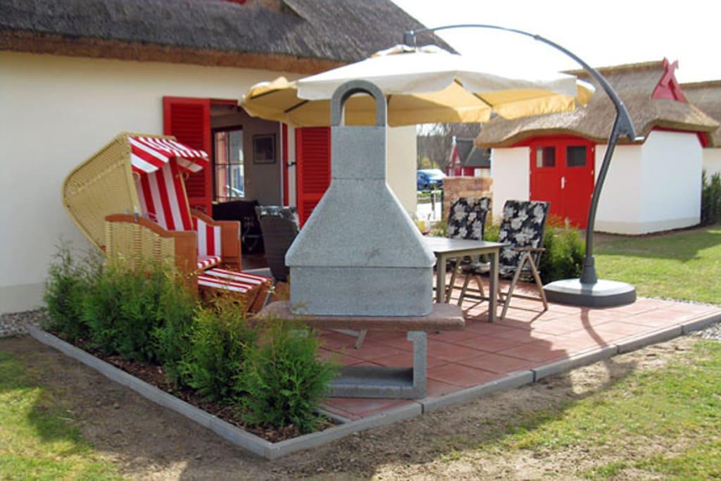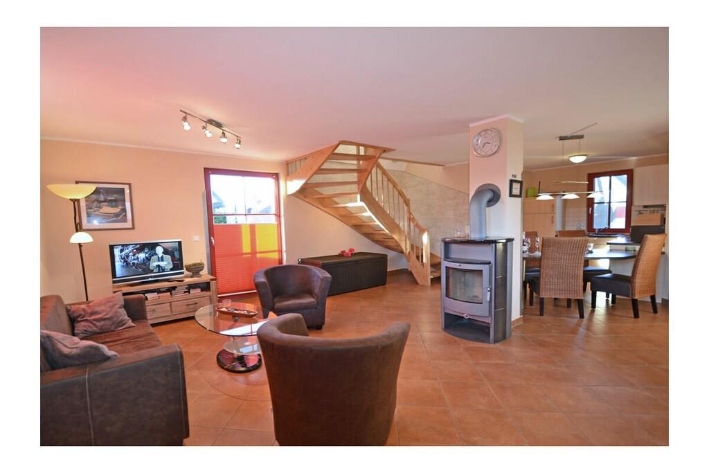 Komfortables Reethaus in Glowe, nur 400 m zum Strand, mit Kamin, Terrasse und umzäuntem Garten für erholsame Ferien.