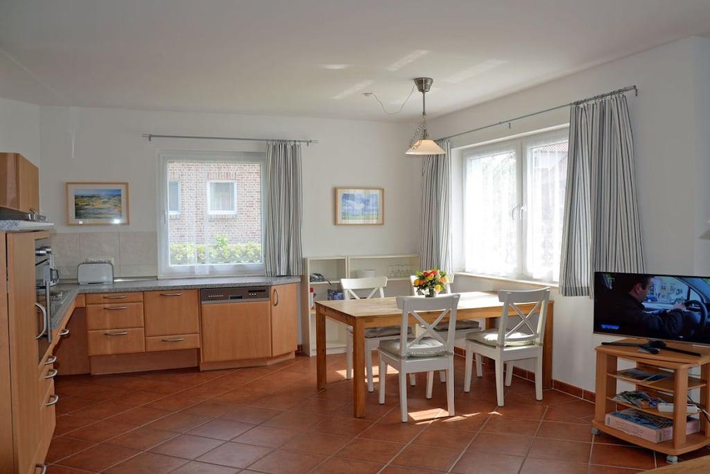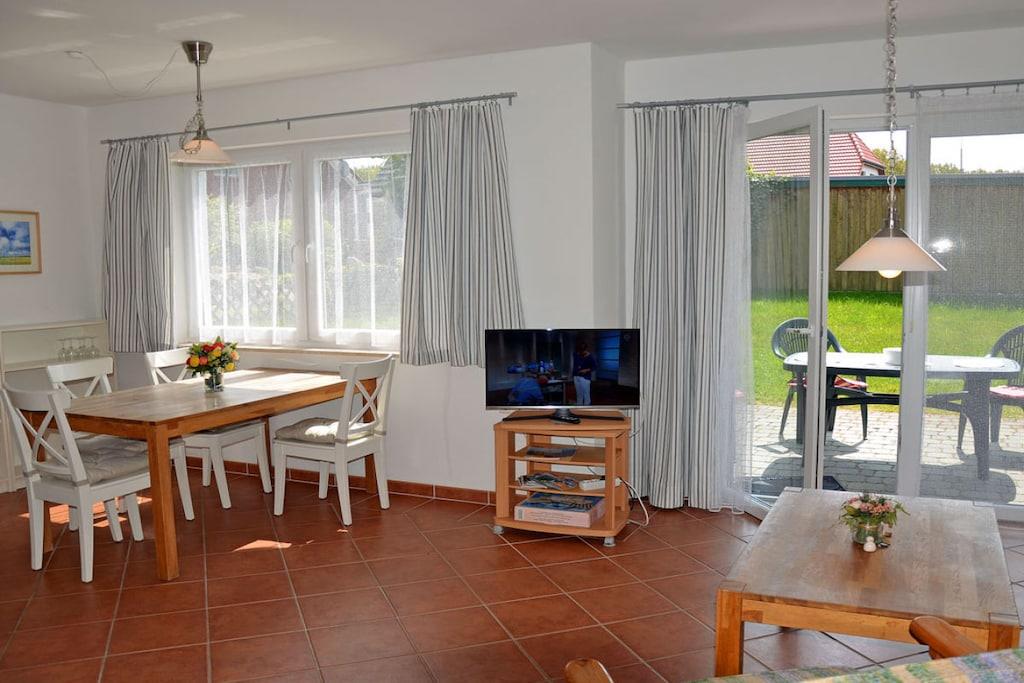 Erholungsort Glowe, Parterre, sehr ruhige Lage, ca. 500 m zum Sandstrand (Ostsee), ca. 1 km zum Bodden, großzügiger Wohn- Essbereich mit Fußbodenheizung, Couch mit Sessel, TV/ Sat (Flatscreen), WLAN vorhanden, Radio/ CD, offene komplett ausgestattete rollstuhlgeeignete Einbauküche mit 4- Plattenherd (Ceranfeld), Backofen, Kühlschrank mit kleinem Gefrierfach, Mikrowelle, Geschirrspüler und diversen Elektrogeräten, 1. Schlafzimmer mit Doppelbett und Kleiderschrank, 2. Schlafzimmer mit 2 Einzelbetten und Kleiderschrank, rollstuhlgerechtes Bad mit Dusche und WC, gemeinschaftlich genutzter Wirtschaftsraum mit Waschmaschine, Wäschetrockner, große Gefriertruhe, Terrasse mit Gartenmöbeln, Grillmöglichkeit besteht Nur 8 Gehminuten zum Ostseesandstrand” rollstuhlgerechte Wohnung (barrierefrei), Nichtraucherwohnung, Waschmaschine und Waschtrockner ohne Gebühr, Grundstück ca. 500 qm, 1 PKW- Stellplatz am Haus im Carport, Haustiere nicht erwünscht, diverse Einkaufsmöglichkeiten mit Bäcker und Restaurants im Ort vorhanden, optimale Rad- und Wandermöglichkeiten Saison-Preise