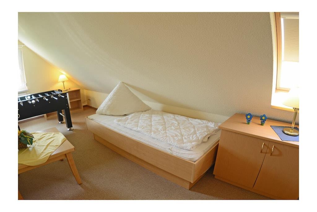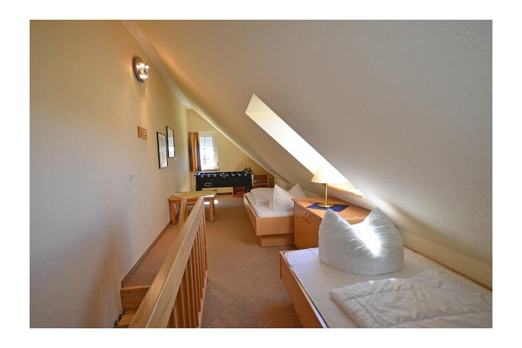 Die Ferienwohnung „Lotte“ bietet Ihnen auf ca. 78m² alles was das Herz begehrt. Die offene Wohnküche ist voll ausgestattet und grenzt an den Wohnbereich mit einer Essecke an. Drei separate Schlafzimmer stehen Ihnen zur Verfügung. Auf dem Südbalkon können Sie an sonnigen Tagen die Landschaft und die frische Seeluft genießen. Gemütlicher Wohn- & Essbereich mit bequemer Schlafcouch, Internet (WLAN), TV Digital & TV SAT/Kabel, Radio, die offene Wohnküche bietet Backofen, Kühlschrank mit kleinem Gefrierfach, Geschirrspüler, Mikrowelle und diverse Elektrogeräte, 1. Schlafzimmer mit Doppelbett (180 x 200) und Kleiderschrank, 2. & 3. Schlafzimmer mit je zwei Einzelbetten (90 x 200), Badezimmer mit Dusche und WC, Föhn Besonderes: An den Boddenwiesen- ruhig, idyllisch und familienfreundlich Die Ferienwohnung verfügt über einen Balkon. Das gemeinschaftlich genutzte Grundstück ist umzäunt. Sehr kinderfreundliche Einrichtung mit Kinderspielen, der Tischkicker bietet Spaß für Groß und Klein. Kinderbett, Kinderhochstuhl und Treppenschutzgitter sind vorhanden. Waschmaschine vorhanden (ohne Gebühr). Kostenfreies W-LAN ist ebenfalls verfügbar. Das Quartier bietet 2 PKW-Stellplätze und einen Fahrradständer (offen). Ein Schuppen bietet Platz für maximal 2 Fahrräder oder ein Kinderwagen. Ein Reiterhof ist in unmittelbarer Nähe. Der Spielplatz ist ca. 8 min Fußweg entfernt. Einkaufsmöglichkeiten, Bäcker und Restaurant befinden sich in unmittelbarer Nähe, optimale Anbindung an Radwanderwege. Genießen Sie vom Balkon den Blick über die Boddenwiesen bis hin zum Großen Jasmunder Bodden. Als Highlight des Abends (gegen 22.30 Uhr) können Sie das Feuerwerk der Störtebeker Festspiele bestaunen. Haustiere sind nicht erwünscht.