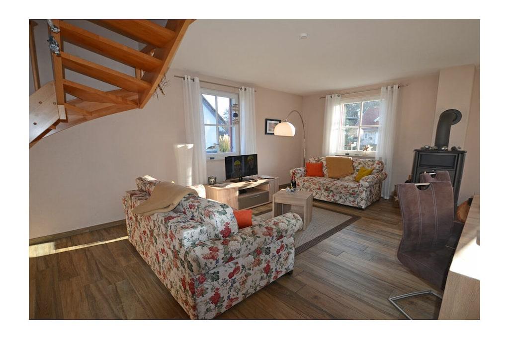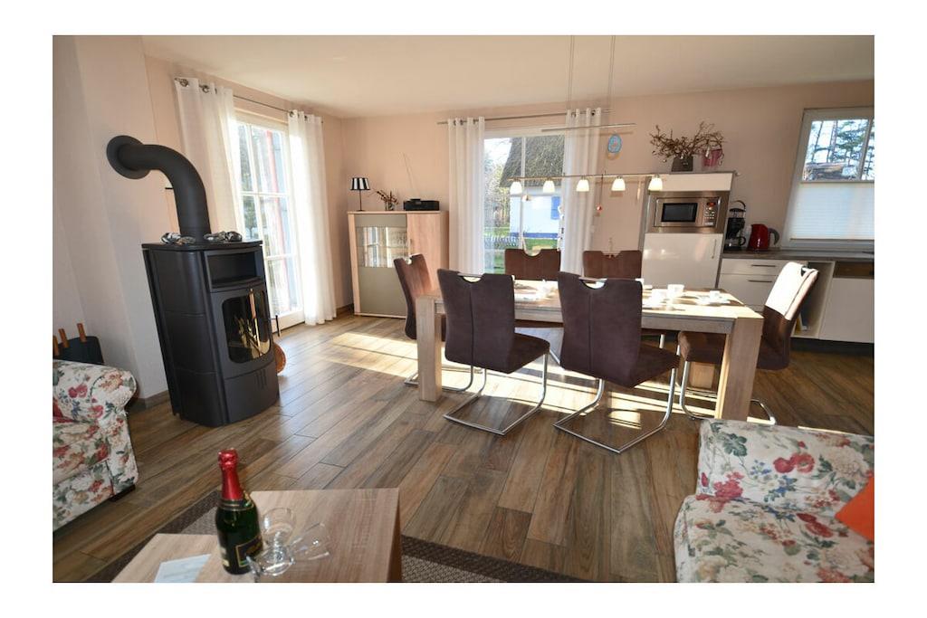 Komfortables Ferienhaus Strandläufer in Glowe mit Sauna, Kamin und großer Terrasse, ideal für erholsamen Urlaub an der Ostsee.