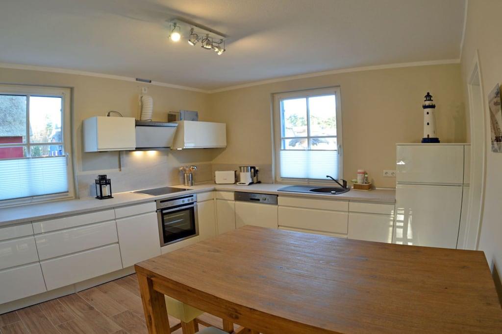 Erholungsort Glowe, über 2 Etagen, ruhige Lage, ca. 500 m zum Sandstrand (Ostsee), ca. 1 km zum Bodden Erdgeschoss: großzügiger Wohn- Essbereich mit Fußbodenheizung und Kamin, gemütliche Couchlandschaft, TV/ Sat (Flatscreen), DVD Player mit diversen DVD`s, Radio/CD, WLan kostenfrei vorhanden, separate komplett ausgestattete moderne Einbauküche mit Tresentisch und 5 Hocker, 4- Plattenherd (Ceranfeld), Backofen, Kühlschrank mit kleinem Gefrierfach, Geschirrspüler und diversen Elektrogeräten, Sauna-Bad mit ebenerdiger Dusche und WC, Obergeschoss: 1. Schlafzimmer mit komfortablen Boxspringbett (180 x 200 durchgehende Matratze), TV (Flatscreen) und Kleiderschrank, 2. Schlafzimmer ebenfalls mit komfortablen Boxspringbett (160 x 200 durchgehende Matratze) und 1 Couch mit Schlaffunktion(90 x 180), Kleiderschrank, hochwertiges Bad mit Badewanne, Regendusche und WC, Terrasse mit 6 Gartenstühle und 2 Liegestühle, Sonnenschirm und Grill vorhanden Erstvermietung Dezember 2016 - Ein perfekter Urlaubstraum zum Entspannen und Genießen ” Reetdachgedecktes Haus, umzäuntes Grundstück ca. 700 qm, zur Straße durch Friesenwall abgegrenzt, Nichtraucher, WLan kostenfrei vorhanden, Fußbodenheizung im gesamten Haus, Wirtschaftraum mit Waschmaschine und Trockner ohne Gebühr, Bügeleisen und Bügelbrett vorhanden, Insektenschutz in den Schlafräumen, Wohn- und Küchenbereich vorhanden, Abstellmöglichkeit für Fahrräder im Gartenhaus, 2 PKW- Stellplätze am Haus, Einkaufsmöglichkeiten, Bäcker und Restaurant in unmittelbarer Nähe, optimale Rad- und Wandermöglichkeiten, Hunde nach Absprache (Gebühr Euro 10,-/ pro Hund/pro Nacht)