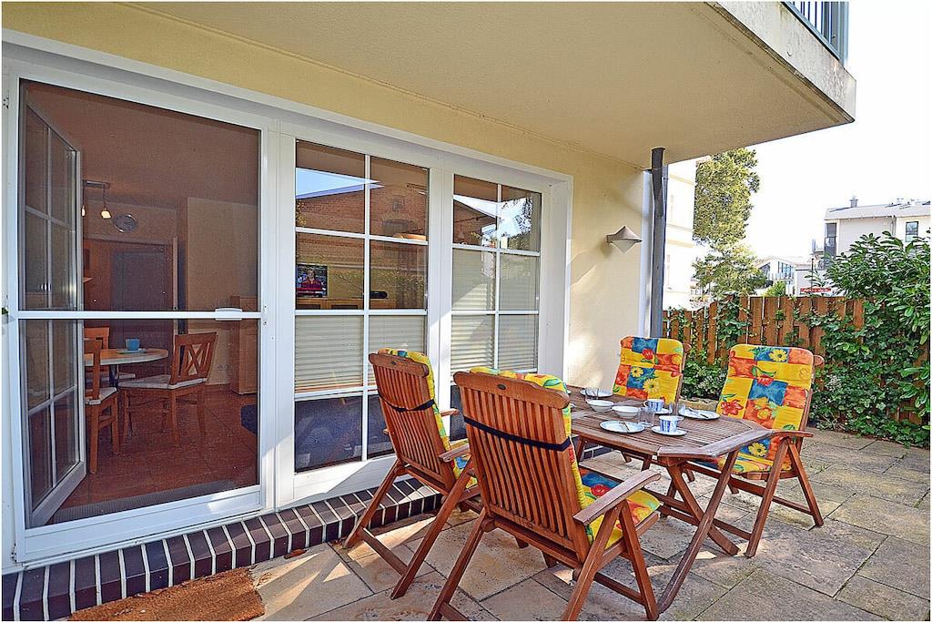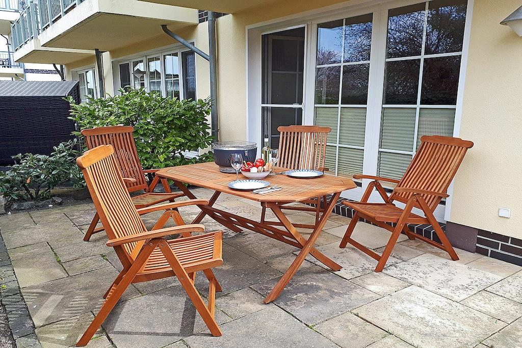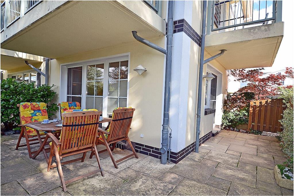 Komfortable Villa Böck 7 direkt am Ostseestrand mit überdachter Terrasse, WLAN und voll ausgestatteter Küche für erholsamen Urlaub.