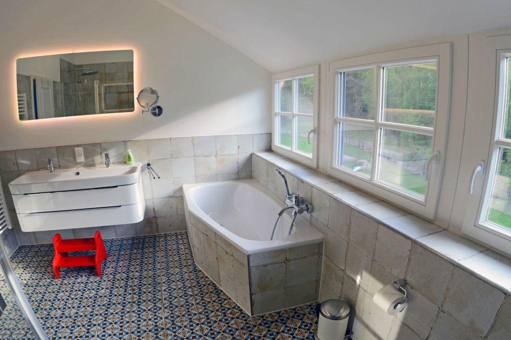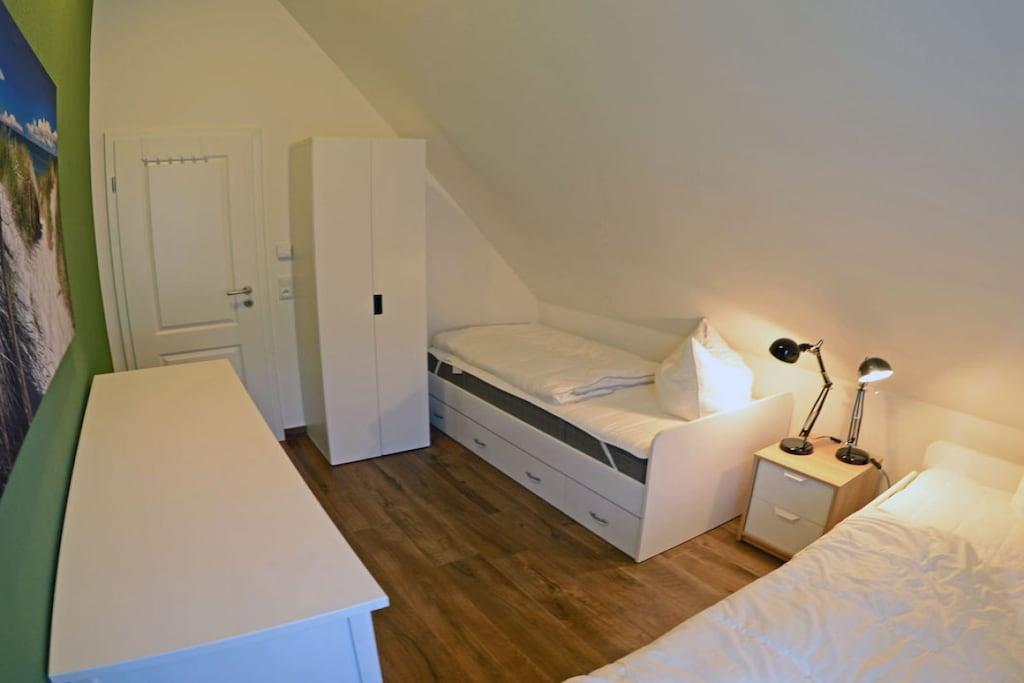 Erholungsort Glowe, über 2 Etagen, sehr ruhige Lage, direkter Zugang zum Kieferwald, ca. 500 m zum Sandstrand (Ostsee), ca. 800 m zum Bodden Erdgeschoss: großzügiger Wohn-Essbereich mit Kamin, gemütlicher Couchlandschaft, Internet-TV (Flatscreen), Musikanlage/CD-Player, DVD-Player, Blu-ray Player, Gesellschaftsspiele und Bücher für Groß und Klein, offene komplett ausgestattete hochwertige Einbauküche mit Granitplatte und Kochinsel, Kaffee-und Nespressomaschine, 4-Plattenherd (Ceranfeld), Backofen, Kühlschrank mit großem Gefrierfach, Geschirrspüler, Waffeleisen und diversen Elektrogeräten, Sauna-Bad mit ebenerdiger Dusche, separates WC, Hauswirtschaftsraum mit Waschmaschine und Trockner Obergeschoss: 1., 2. und 3. Schlafzimmer mit je einem Doppelbett (180×200) und Kleiderschrank, 4. Schlafzimmer mit 2 Einzelbetten (90×200) und Kleiderschrank (in einem Schlafzimmer ist Internet-TV (Flatscreen) vorhanden), großes Bad mit Badewanne und Regendusche, Fön ist vorhanden Außenbereich: die Terrassen des Hauses sind nach Süden und Westen angelegt, gemütliche Gartenmöbel (8 Gartenstühle und 4 Liegestühle) und ein großer Gartentisch, ein Strandkorb lädt zum Relaxen ein, Sonnenschirm sowie Grill vorhanden Willkommen im Reetdachhaus Dünenrose und fühlen Sie sich wohl - wie zu Hause- großes, komplett umzäuntes Grundstück ca. 740 m², direkter Zugang zum Waldwanderweg, Internet (WLAN) vorhanden, kinderfreundlich eingerichtet, für die Kleinen gibt es einen eigenen Sandspielplatz, Bollerwagen, Kinderhochstuhl und Kinderreisebett vorhanden, Nichtraucher, Allergiker geeignet, Fußbodenheizung im gesamten Haus, Waschmaschine und Trockner ohne Gebühr, Wäscheständer, Tritthocker für Bad und Küche vorhanden, Insektenschutz und Rollläden/ Plissees, Abstellmöglichkeit für Fahrräder im Gartenhaus, Bollerwagen, 2 PKW-Stellplätze direkt am Haus, Einkaufsmöglichkeiten, Bäcker und Restaurant in unmittelbarer Nähe, optimale Rad- und Wandermöglichkeiten, Haustiere nach Absprache (Gebühr 5 Euro pro Nacht/ pro Haustier)