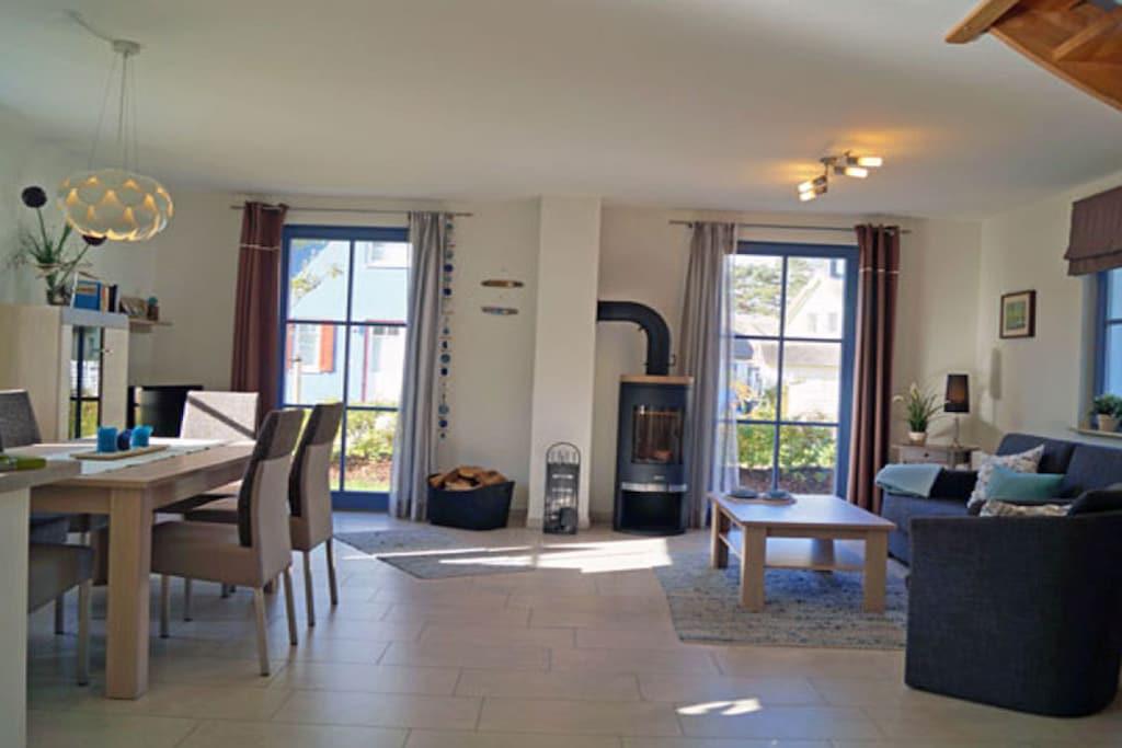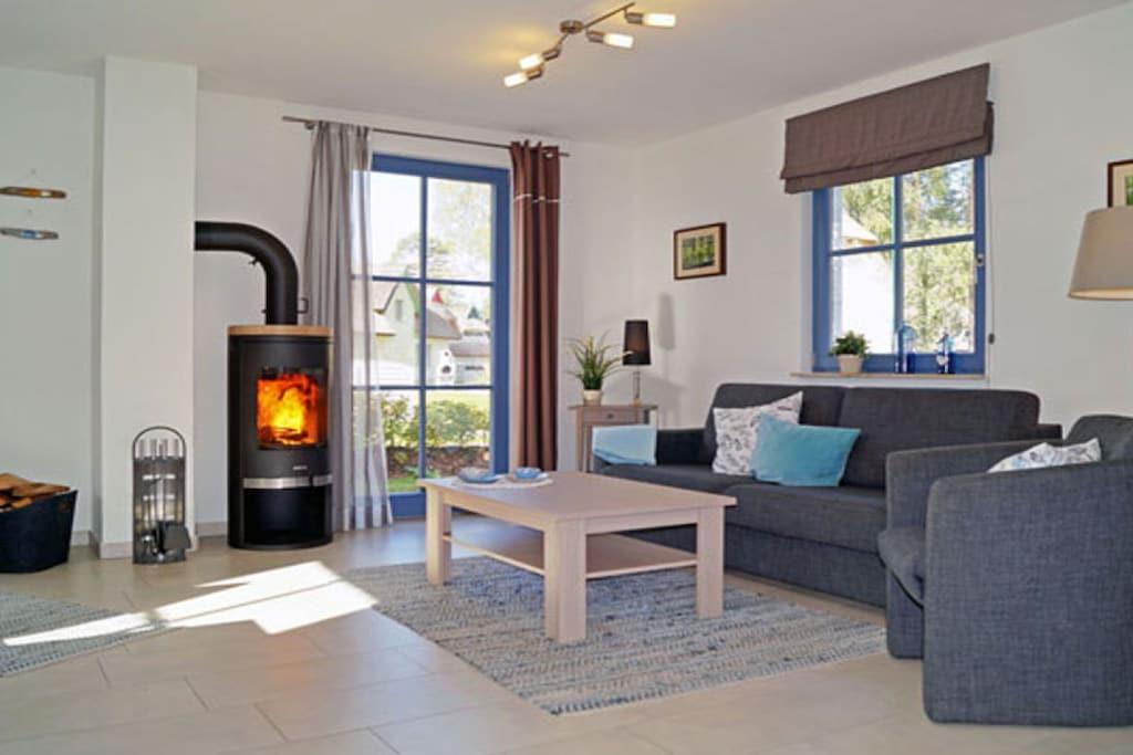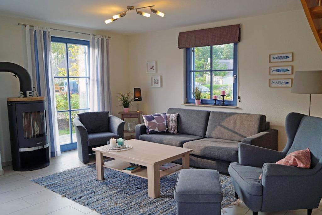 Komfortables Ferienhaus in Glowe mit Kamin, Sauna und nur 400 m zum Sandstrand an der Ostsee.