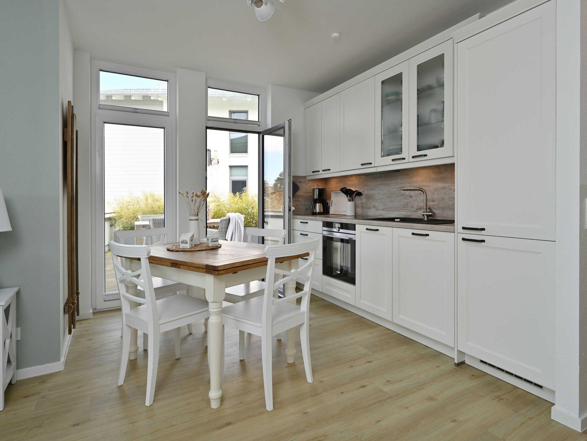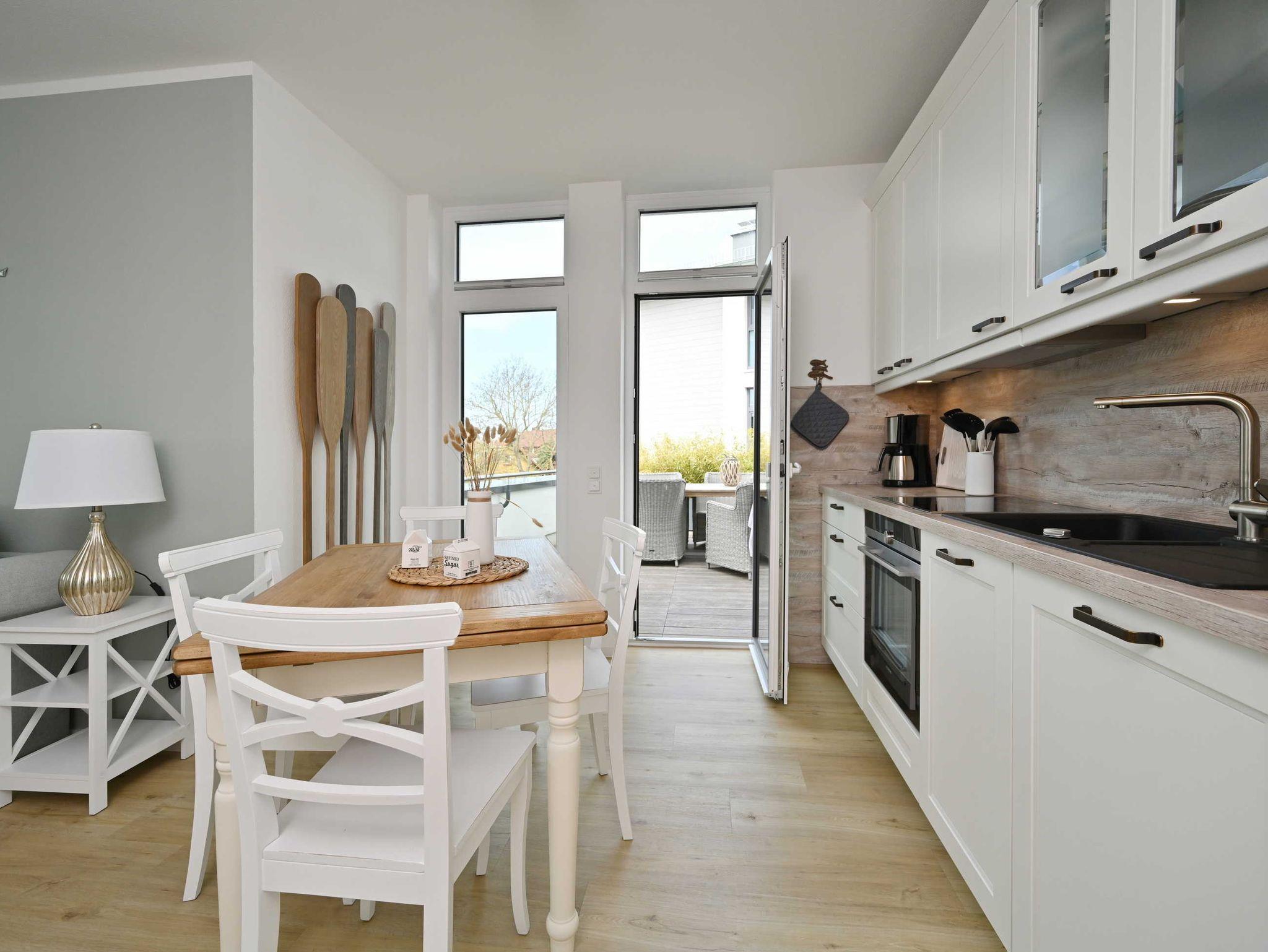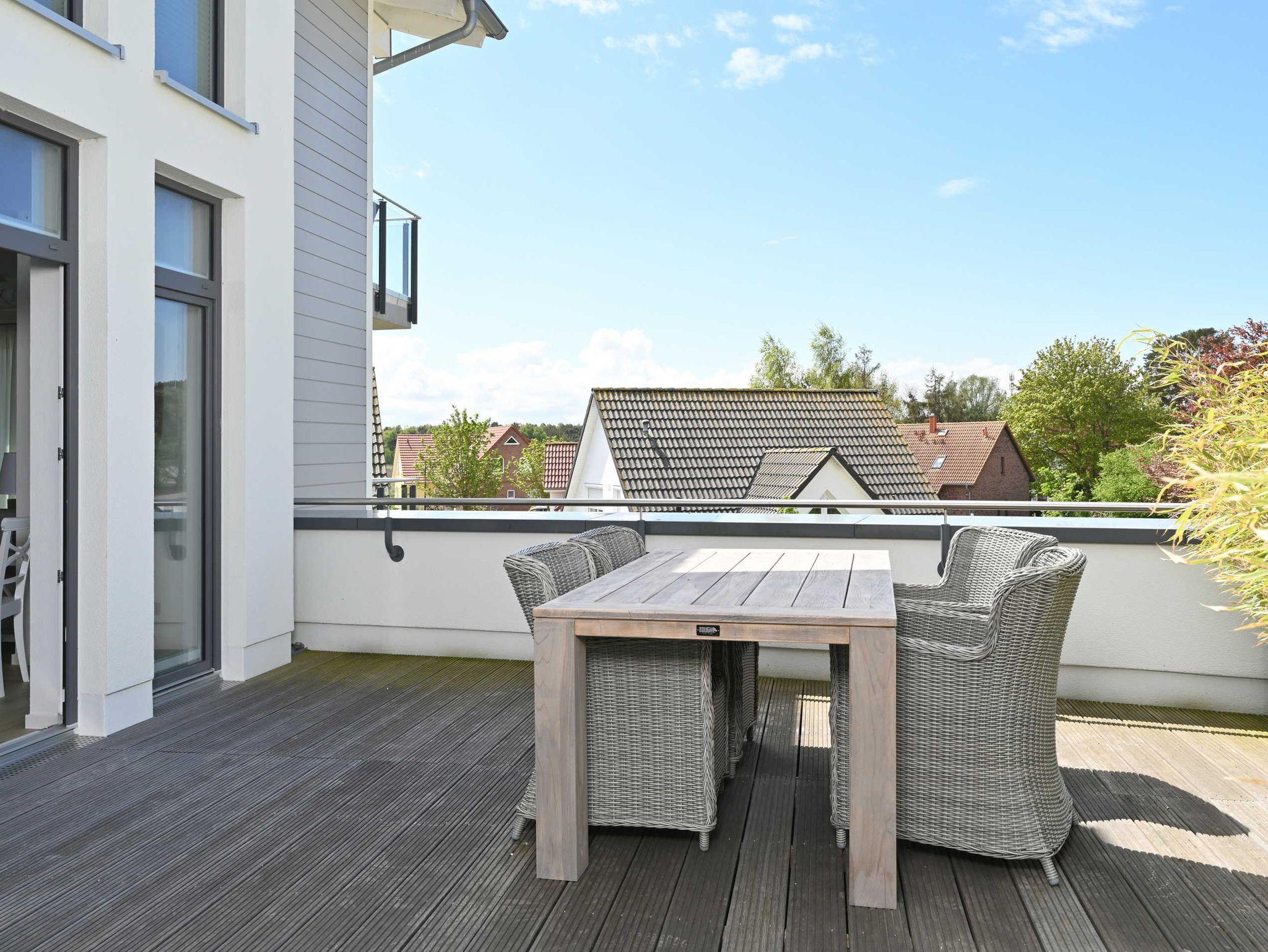 Die nigelnagelneue Ferienwohnung Waveside hat alles was das Urlaubsherz begehrt - zwei Schlafzimmer mit je einem Doppelbett (durchgehende Matratzen), ein Bad mit Dusche, ein Gäste-WC, ein Wohnzimmer mit Kamin und integrierter Küche. Auf dem Balkon oder der riesigen Dachterrasse genießen Sie die Nähe zum Meer. Die Ostsee und der weiße Sandstrand sind nur zwei Gehminuten entfernt.