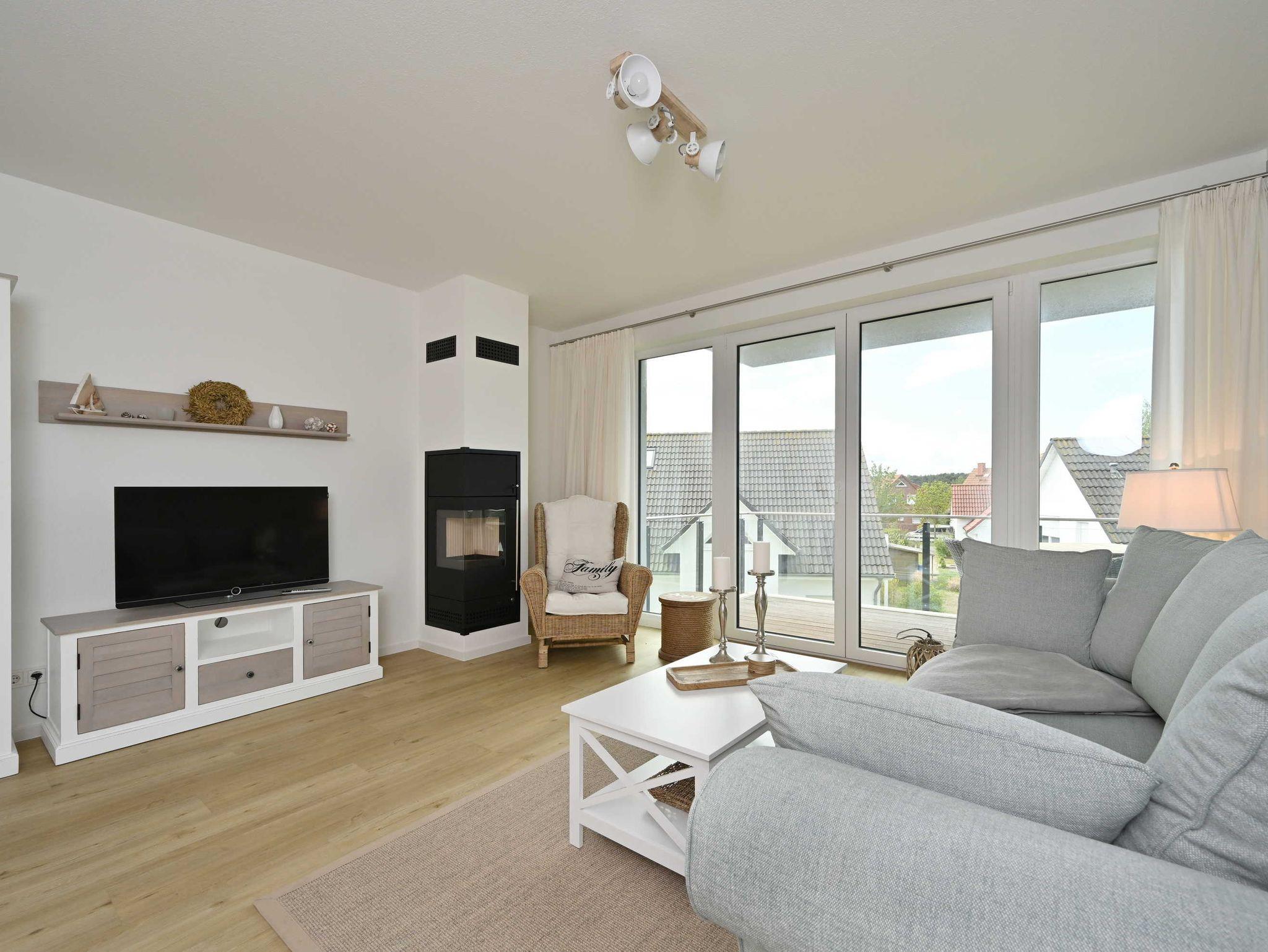 Die moderne Ferienwohnung Waveside in Glowe bietet Komfort, Kamin und Meerblick nur 2 Gehminuten vom Strand entfernt.