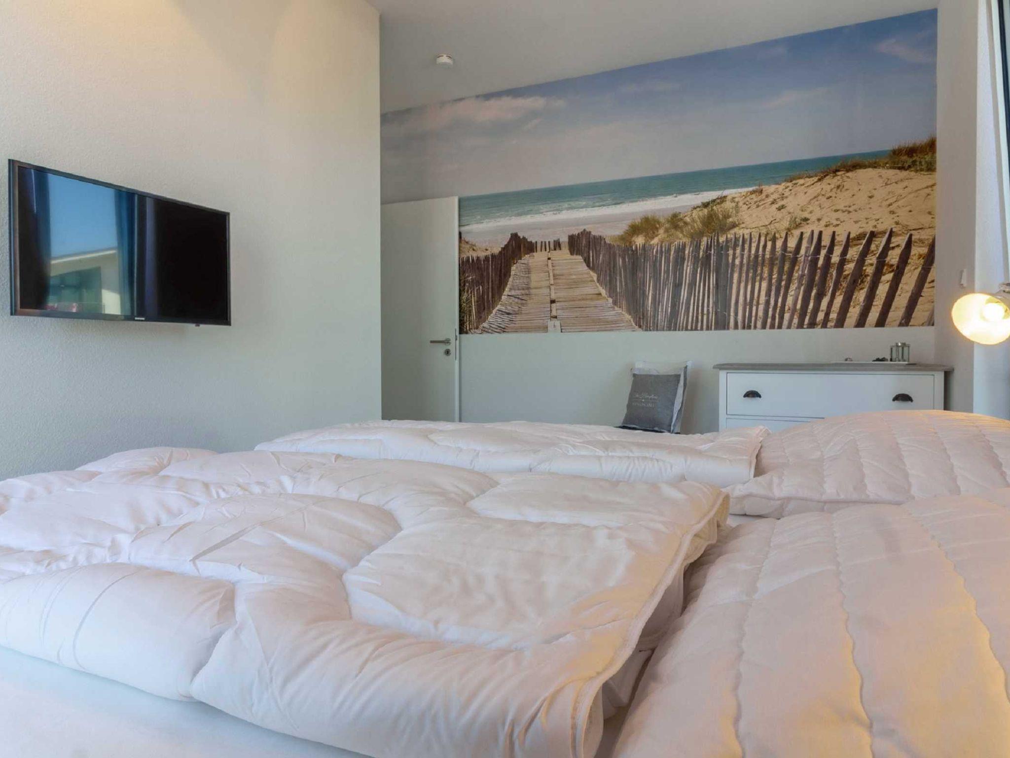1 Schlafzimmer mit Doppelbett und TV-Gerät