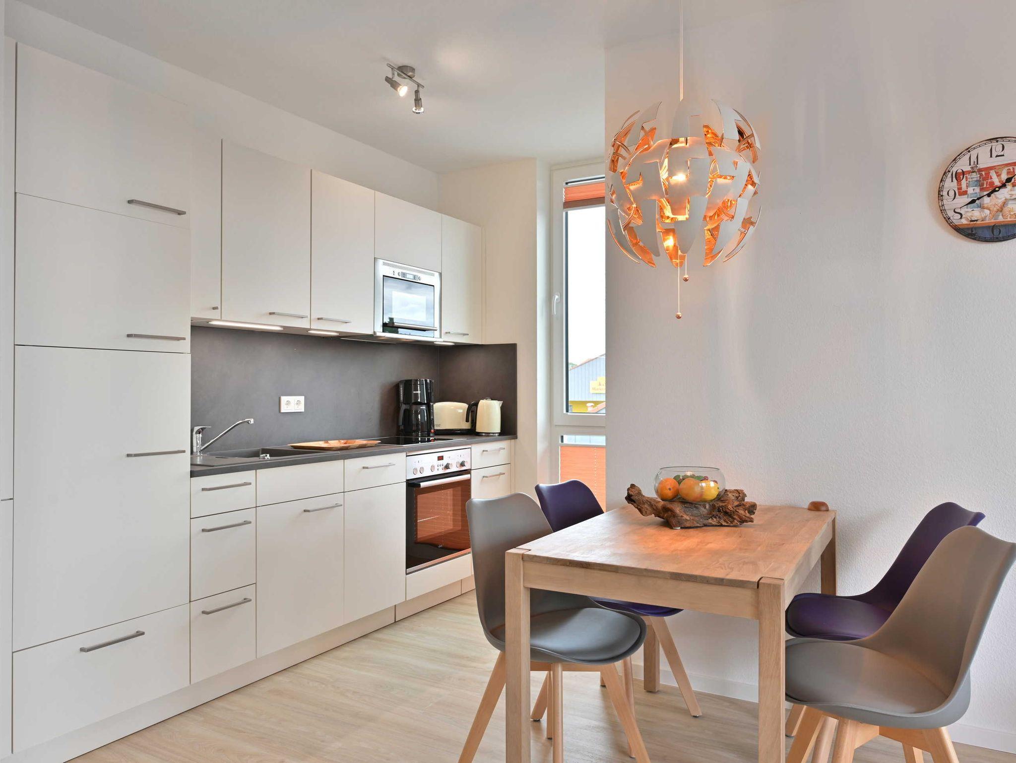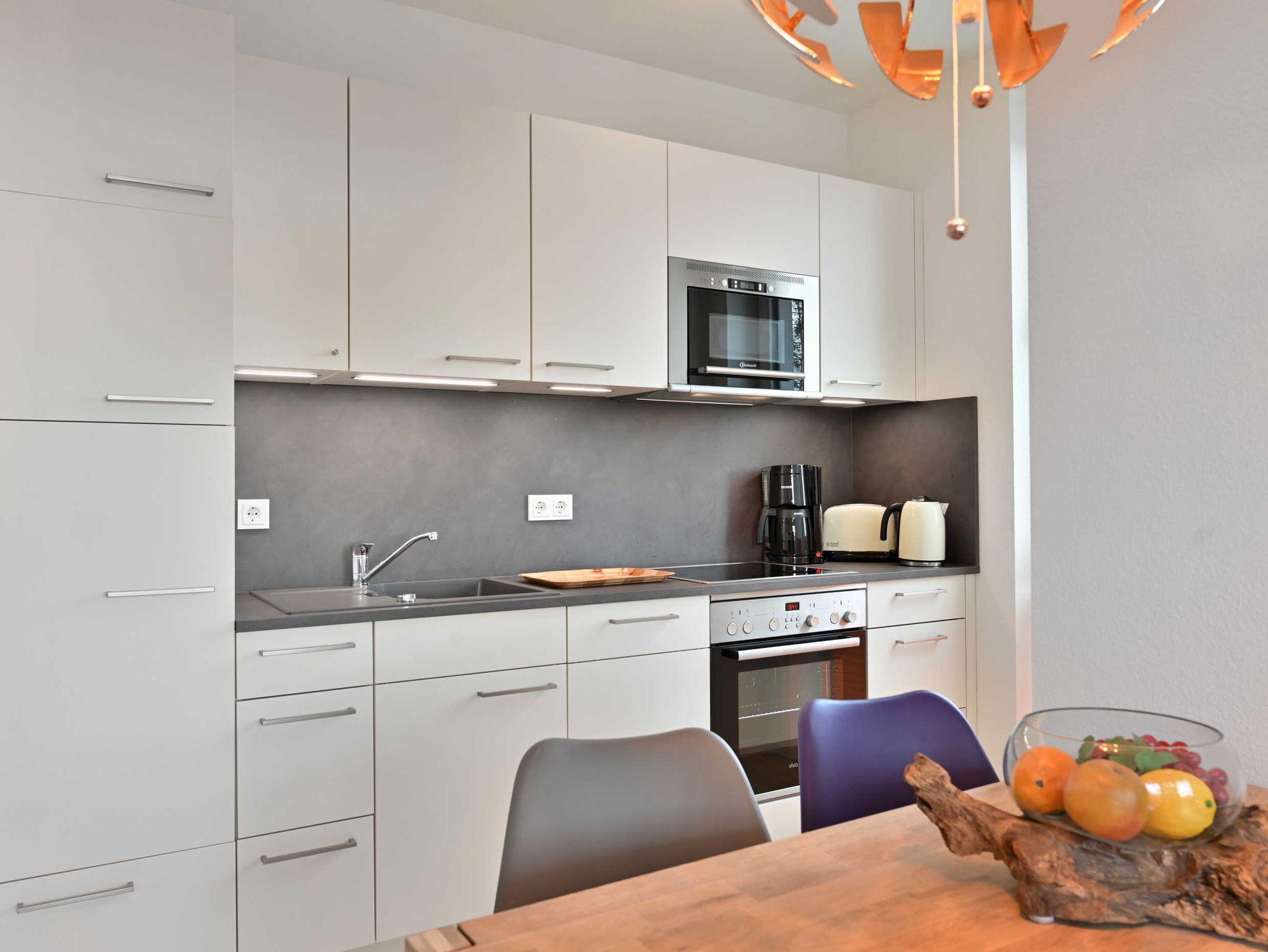 Küche mit Spülmaschine, Herd mit Backofen, Gefriermöglichkeit, Mikrowelle