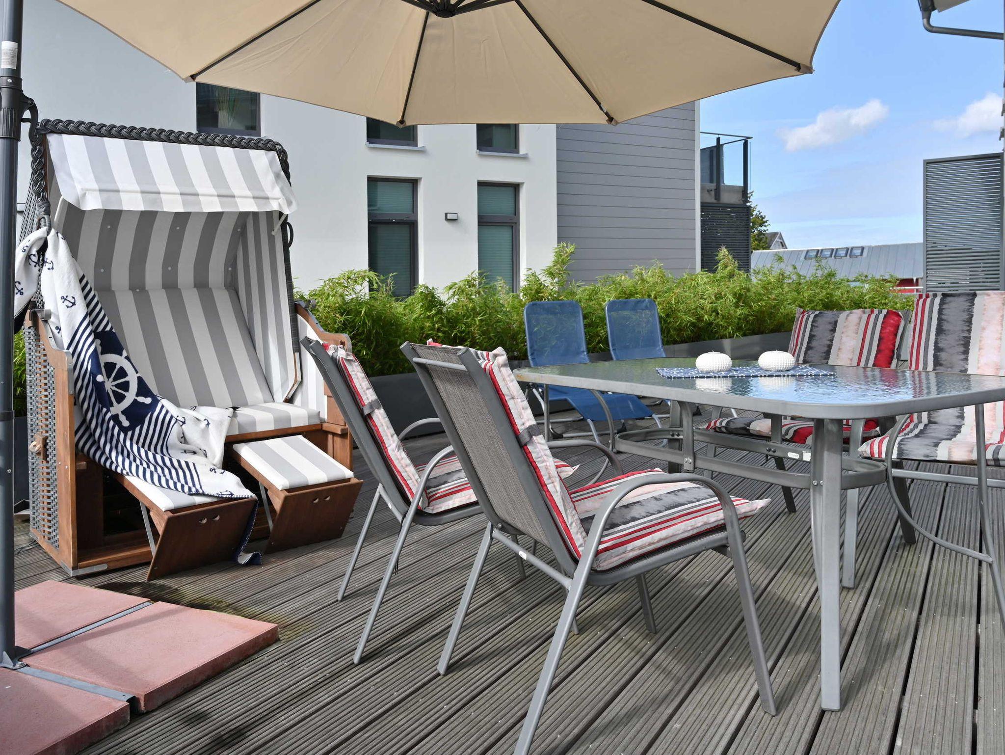 Dachterrasse und Balkon mit Strandkorb und Gartenmöbeln