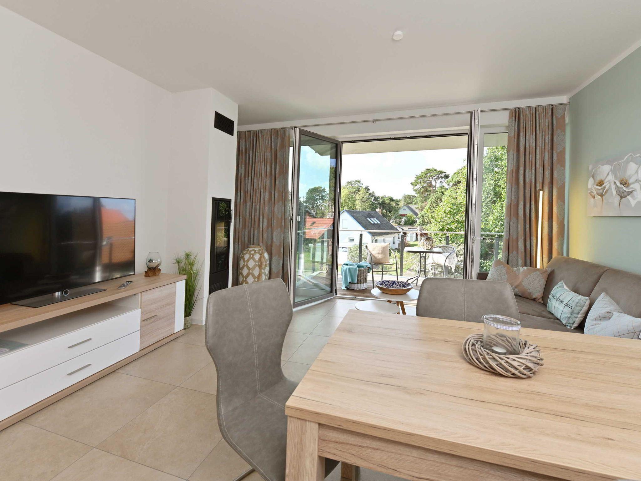 Die Ferienwohnung Trauminsel in Glowe bietet Balkon, Dachterrasse, Sauna und liegt nur 300 m vom feinen Sandstrand der Schaabe entfernt.