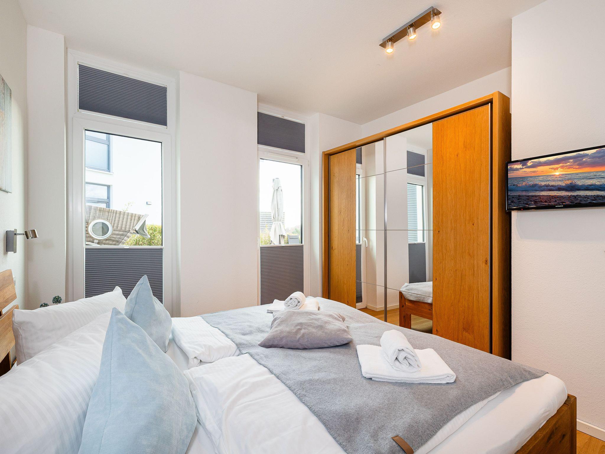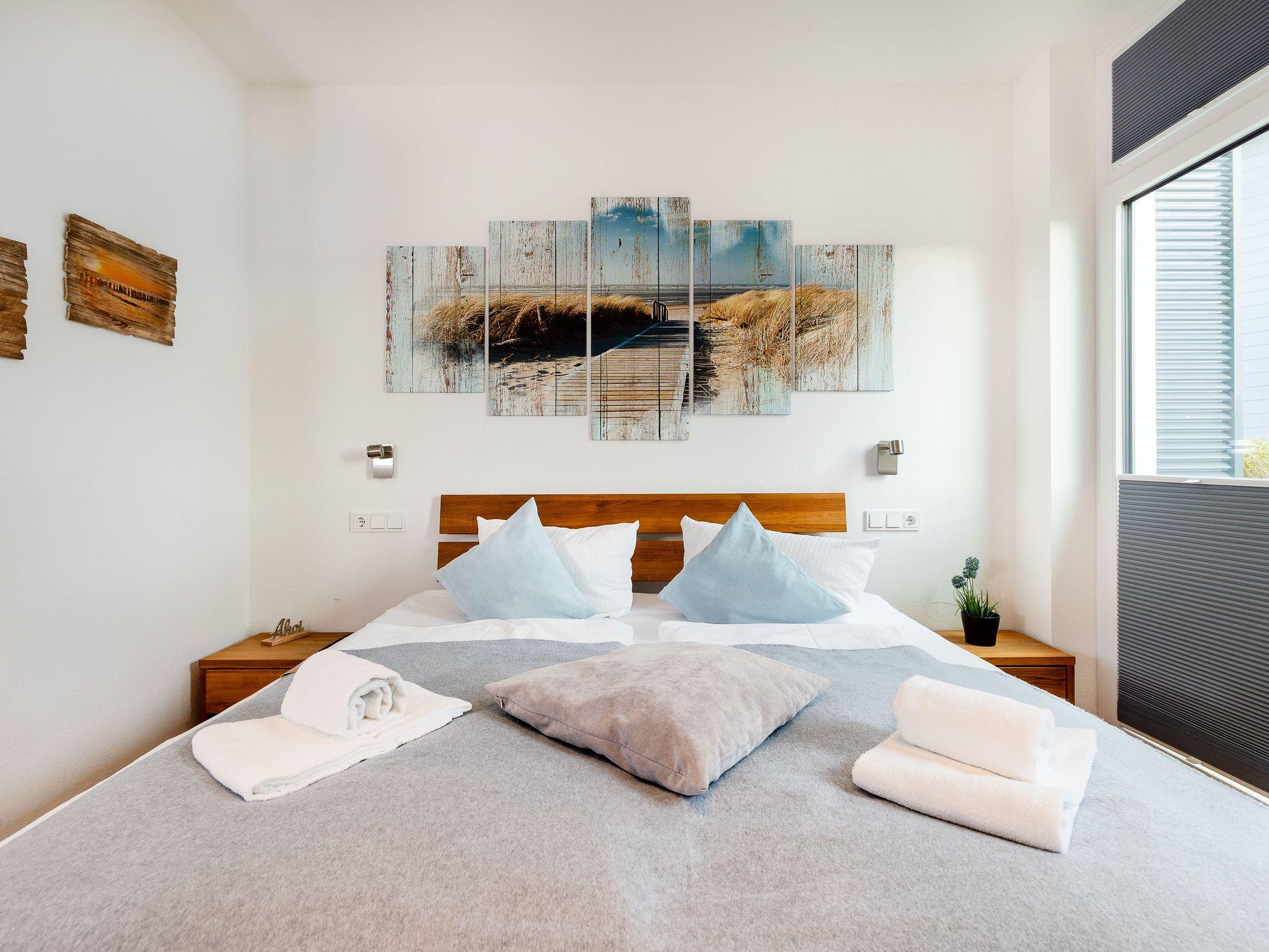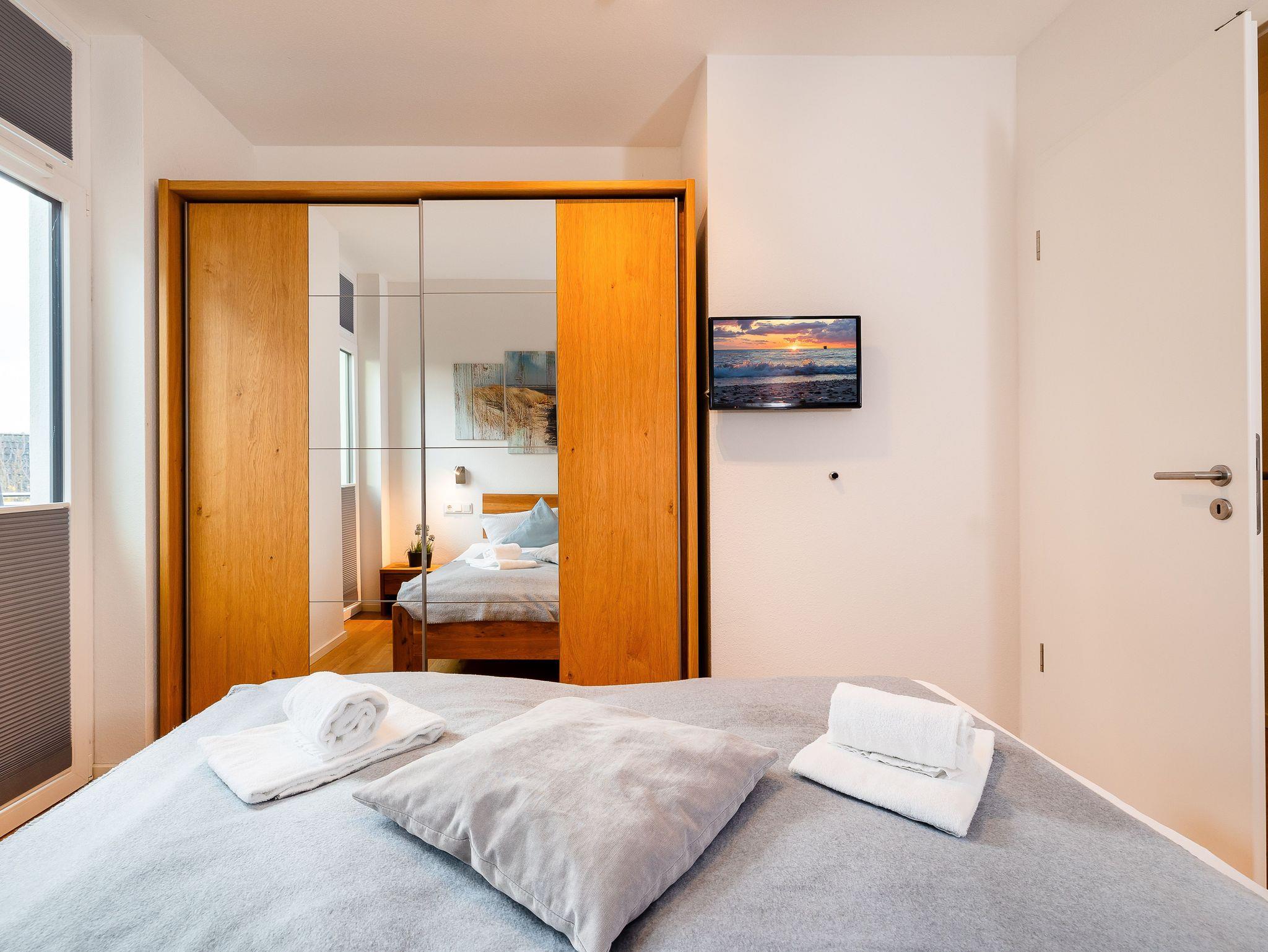 Die Wohnung bietet auf 62qm einen gemütlichen Wohnraum mit integrierter Küche, einen Schlafraum mit Doppelbett und ein Bad mit Dusche. Die 30qm große Dachterrasse mit Strandkorb ist aus dem Wohn- wie auch aus dem Schlafbereich begehbar. Der Südbalkon ist ebenfalls aus dem Wohnbereich zu erreichen.