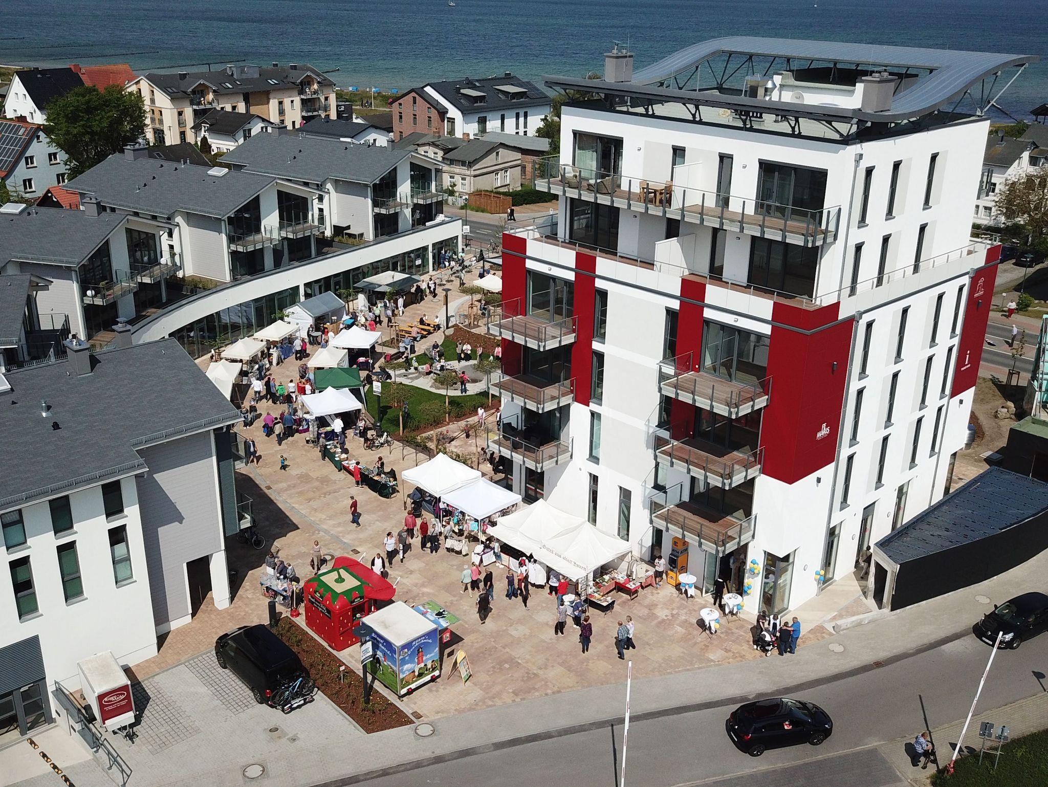 Die Ferienwohnung Sonnenterrasse befindet sich im Boddenmarkt Glowe, im Ortszentrum des Erholungsortes Glowe.