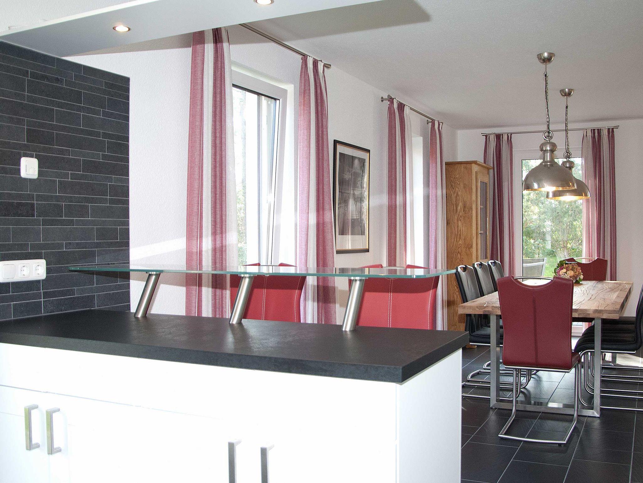 Im Wohnbereich werden Sie sich auch mal bei schlechtem Wetter sehr wohlfühlen. Die Einrichtung mit massiven Eichenmöbeln ist auf den gemütlichen Stil des Hauses abgestimmt.