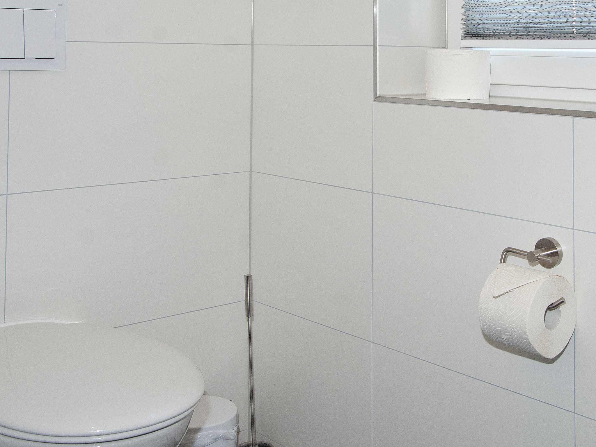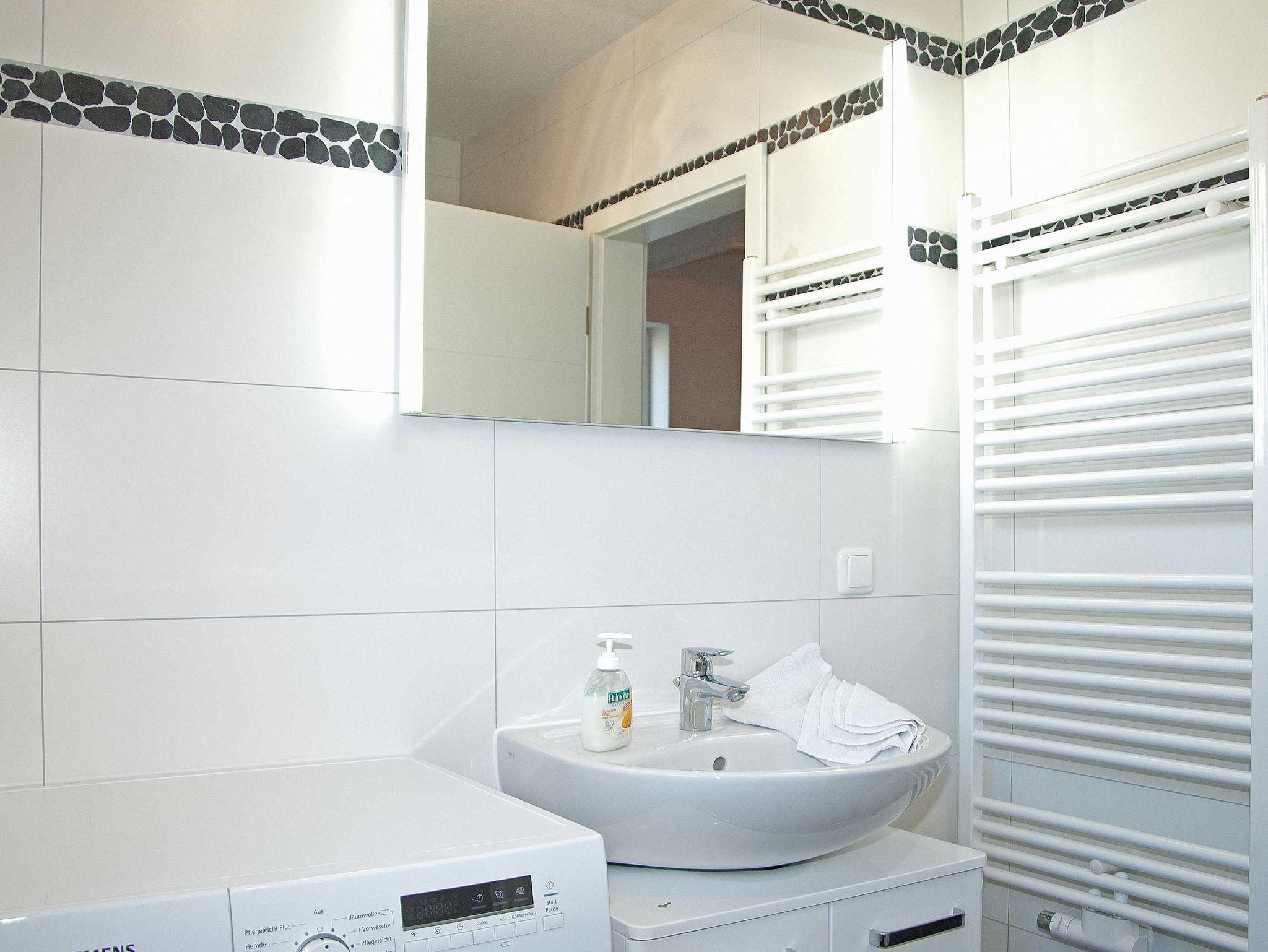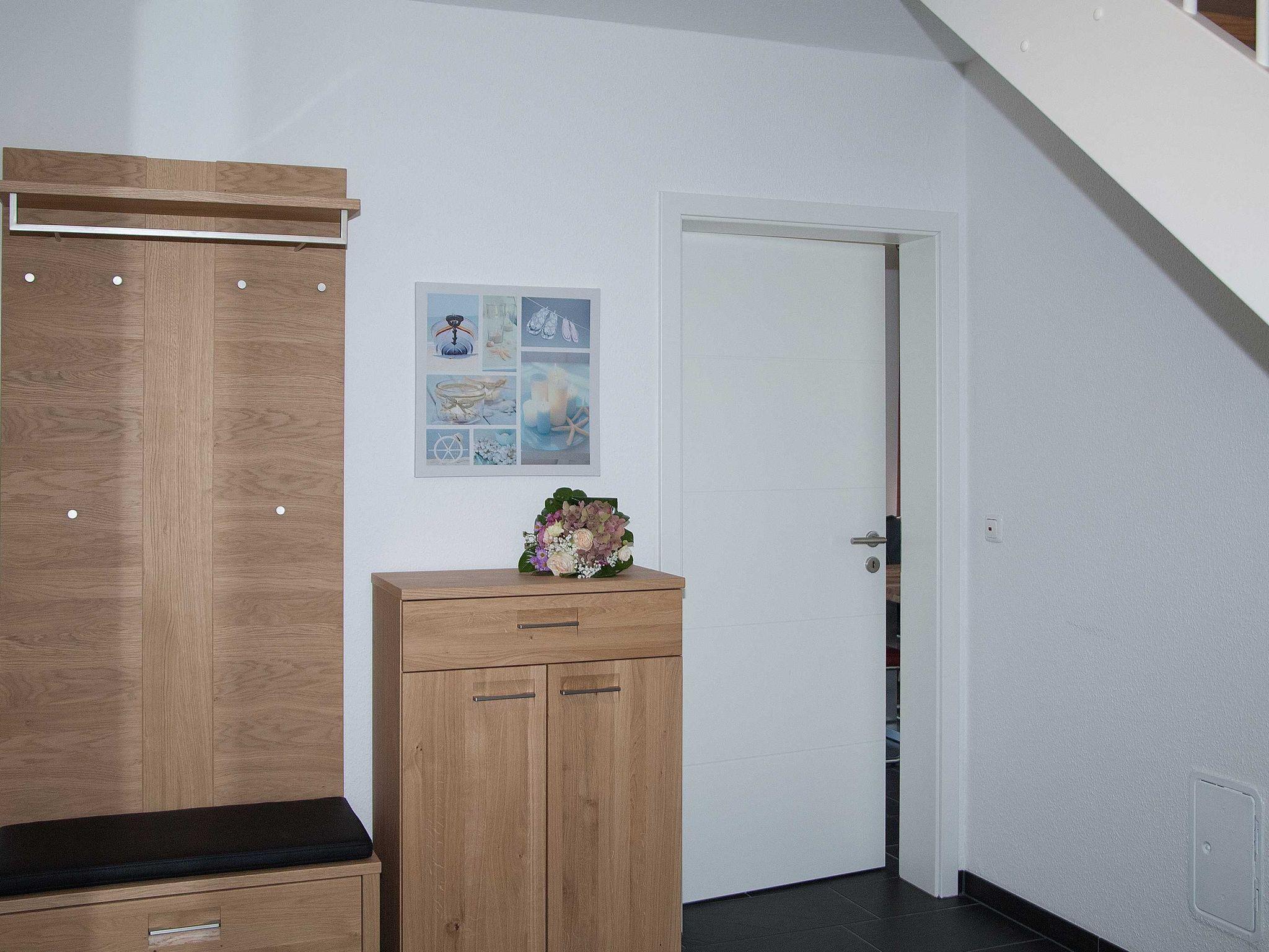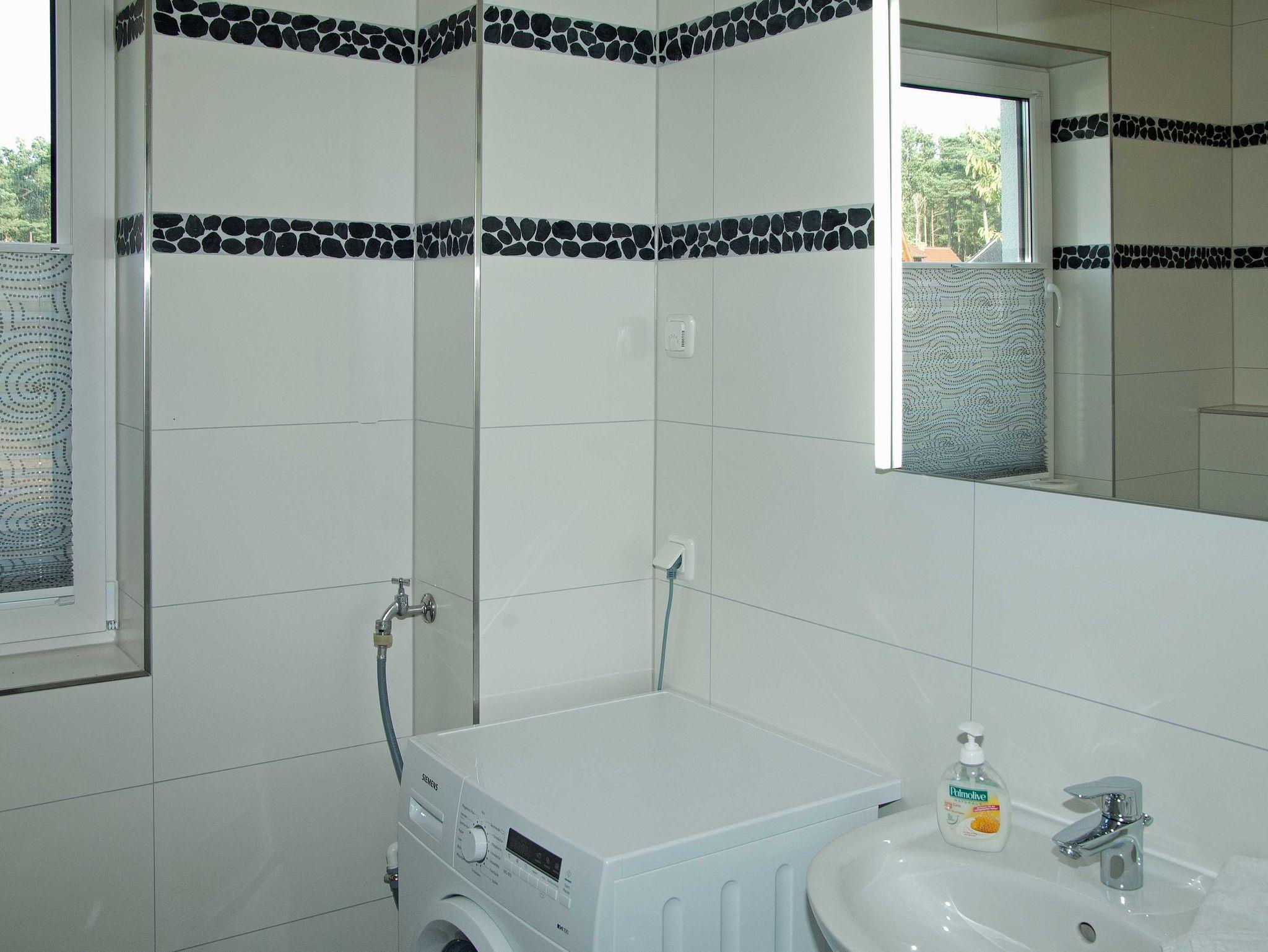 Im Hausanschlussraum steht die Waschmaschine, der Staubsauger und Reinigungsmittel. Dort ist auch ein Regal, in dem Getränke und sonstige Kleinigkeiten gelagert werden können.