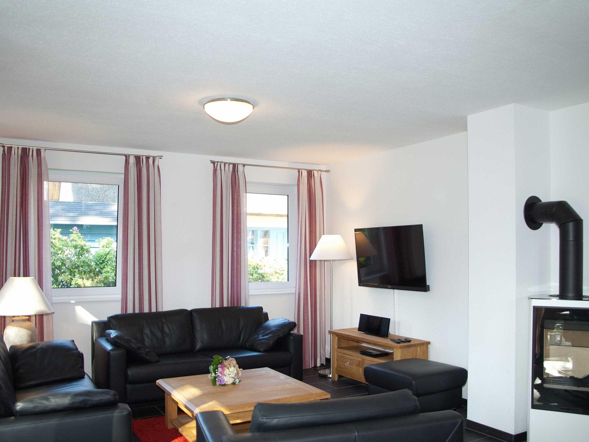 Zum Entspannen finden Sie dort eine riesige Sofaecke aus feinstem Leder. Wenn dann das Kaminfeuer flackert, erlebt man bestimmt romantische Abende. Sollten Sie mit Kindern die Ferien geniessen, so werden Sie auch die Entertainmentaustattung mit Flachbildschirm und hunderten Programmen schätzen. Auch die Stereoanlage können Sie gern richtig aufdrehen, denn durch die massive Bauweise kann Sie garantiert kein Nachbar hören.