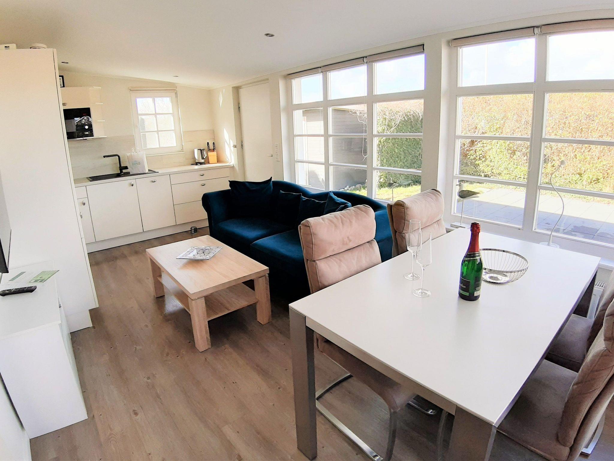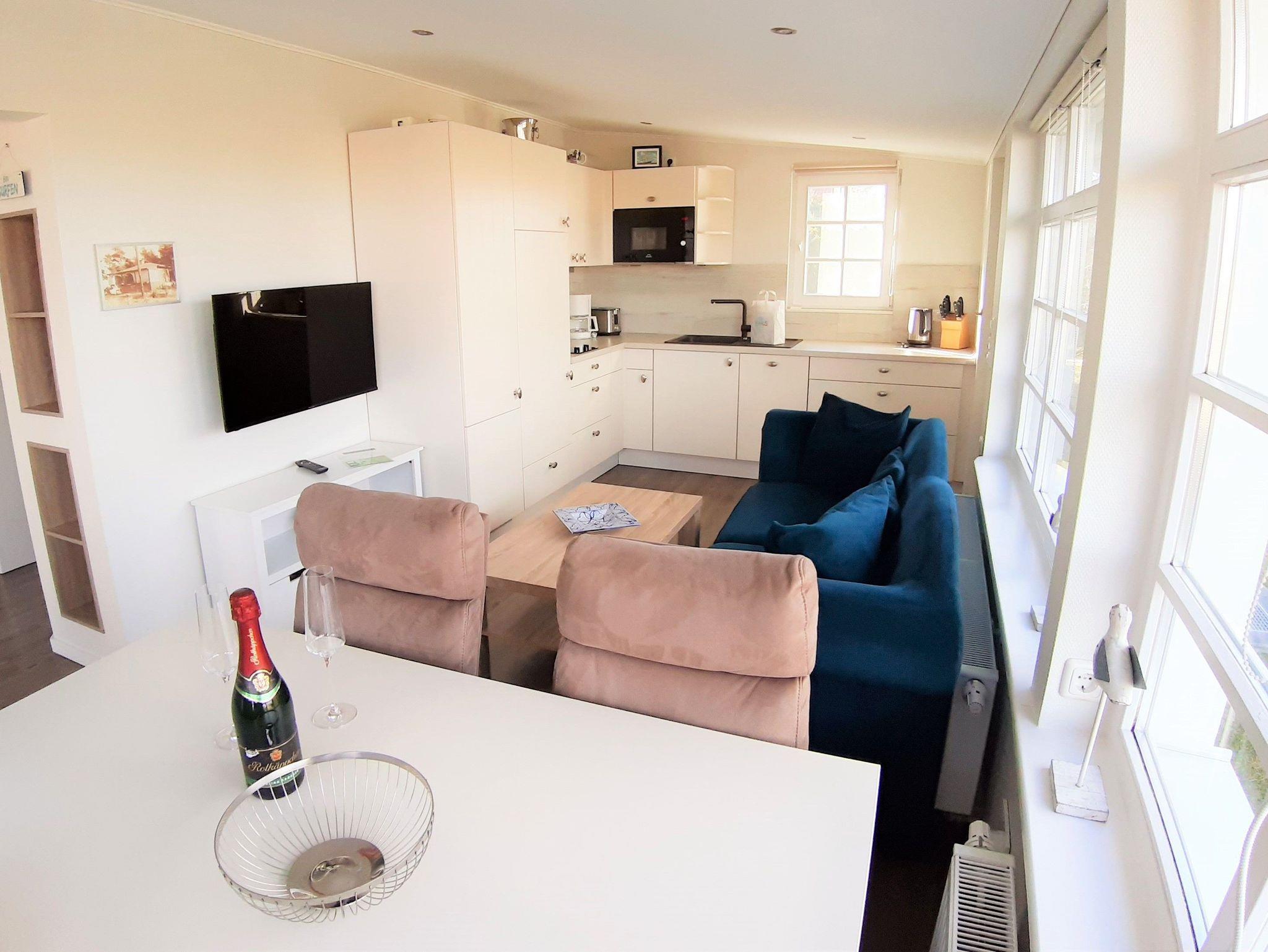 Unser Strandbungalow Jette liegt direkt hinter der Düne des Ostseestrandes im Erholungsort Glowe. Näher am Strand zu wohnen, ist kaum möglich! In den kleinen aber feinen Wohnbereich sind eine Küche und ein Essbereich integriert. Außerdem sind eine Couch und ein TV Gerät vorhanden. An den Wohnbereich schließt eine Naturterrasse an. Hier können Sie Ihre Mahlzeiten einnehmen und dabei den Wellen beim Rauschen zu hören.