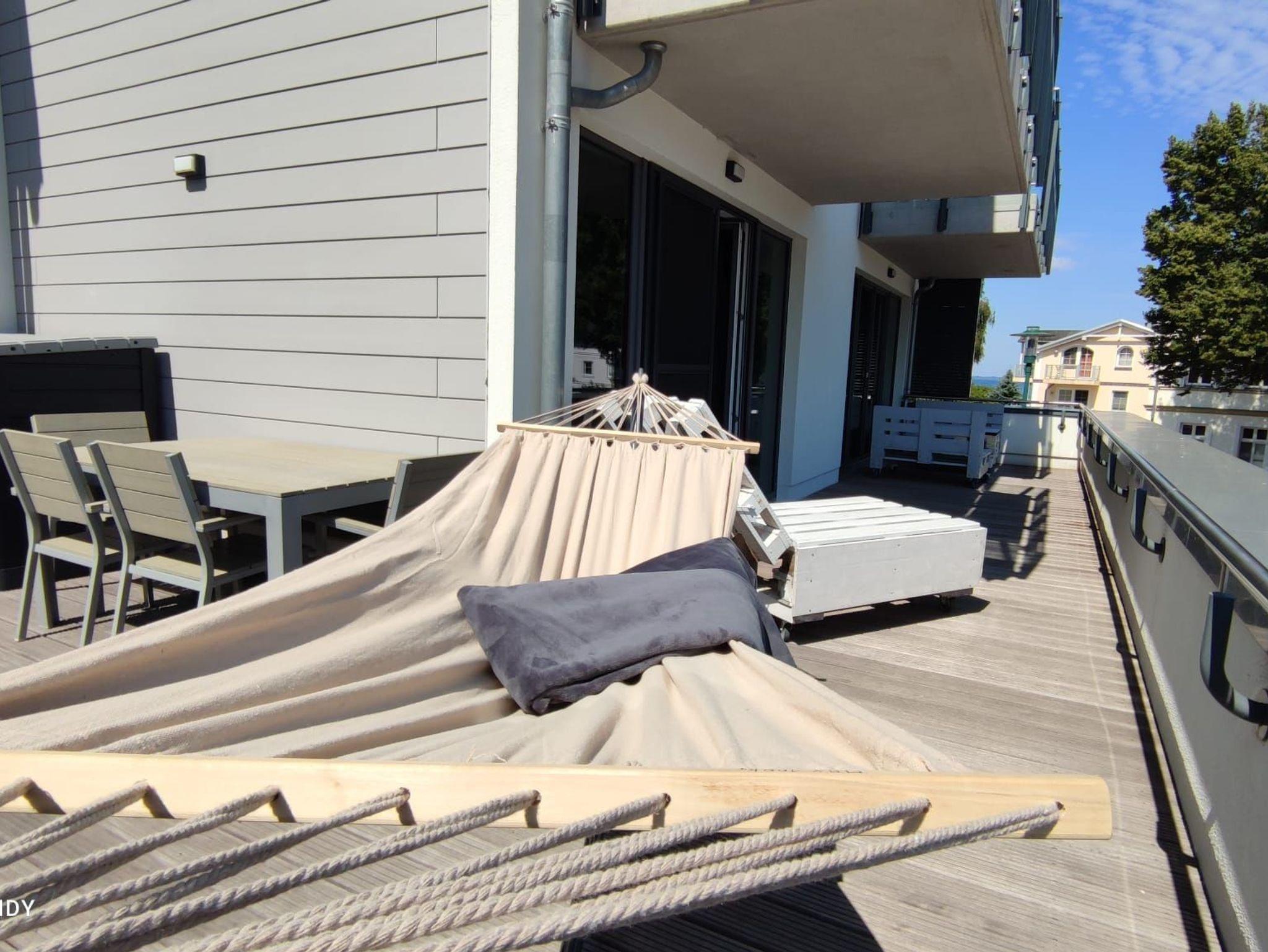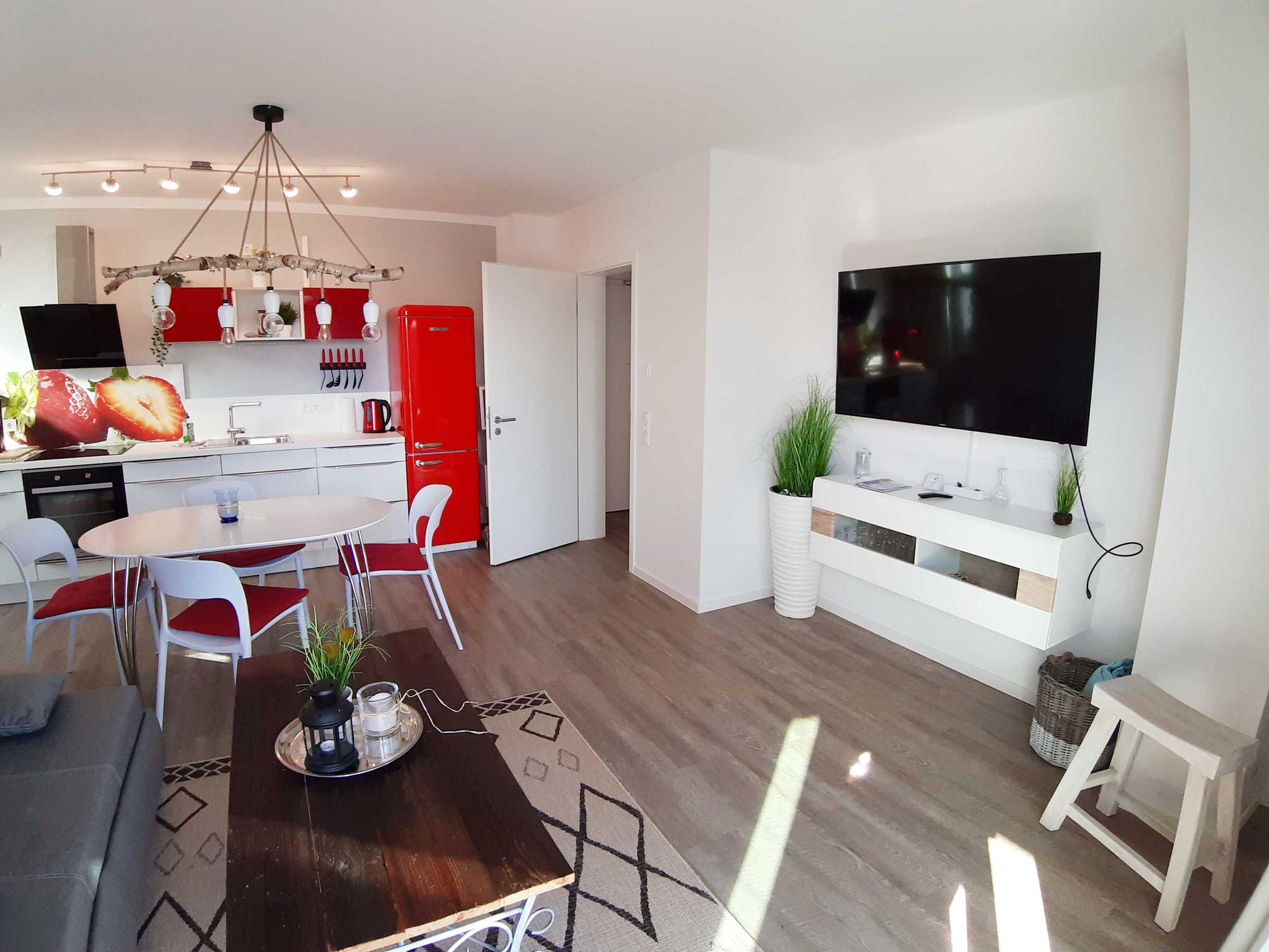Die Wohnung bietet auf 70qm einen gemütlichen Wohnraum mit integrierter Küche, einen Schlafraum mit Doppelbett und ein Bad mit Dusche. Die riesige Dachterrasse ist aus dem Wohn- wie auch aus dem Schlafbereich begehbar.