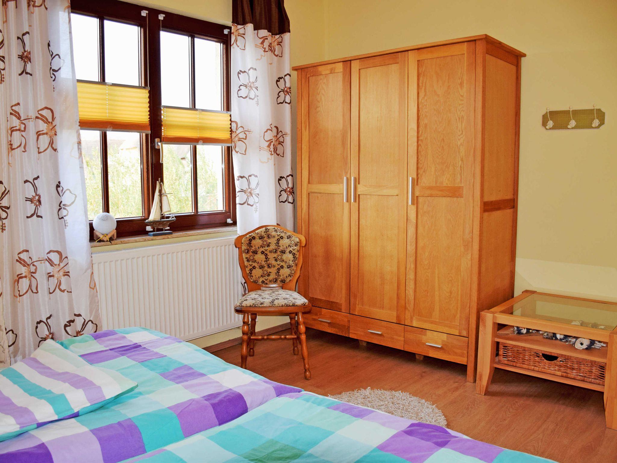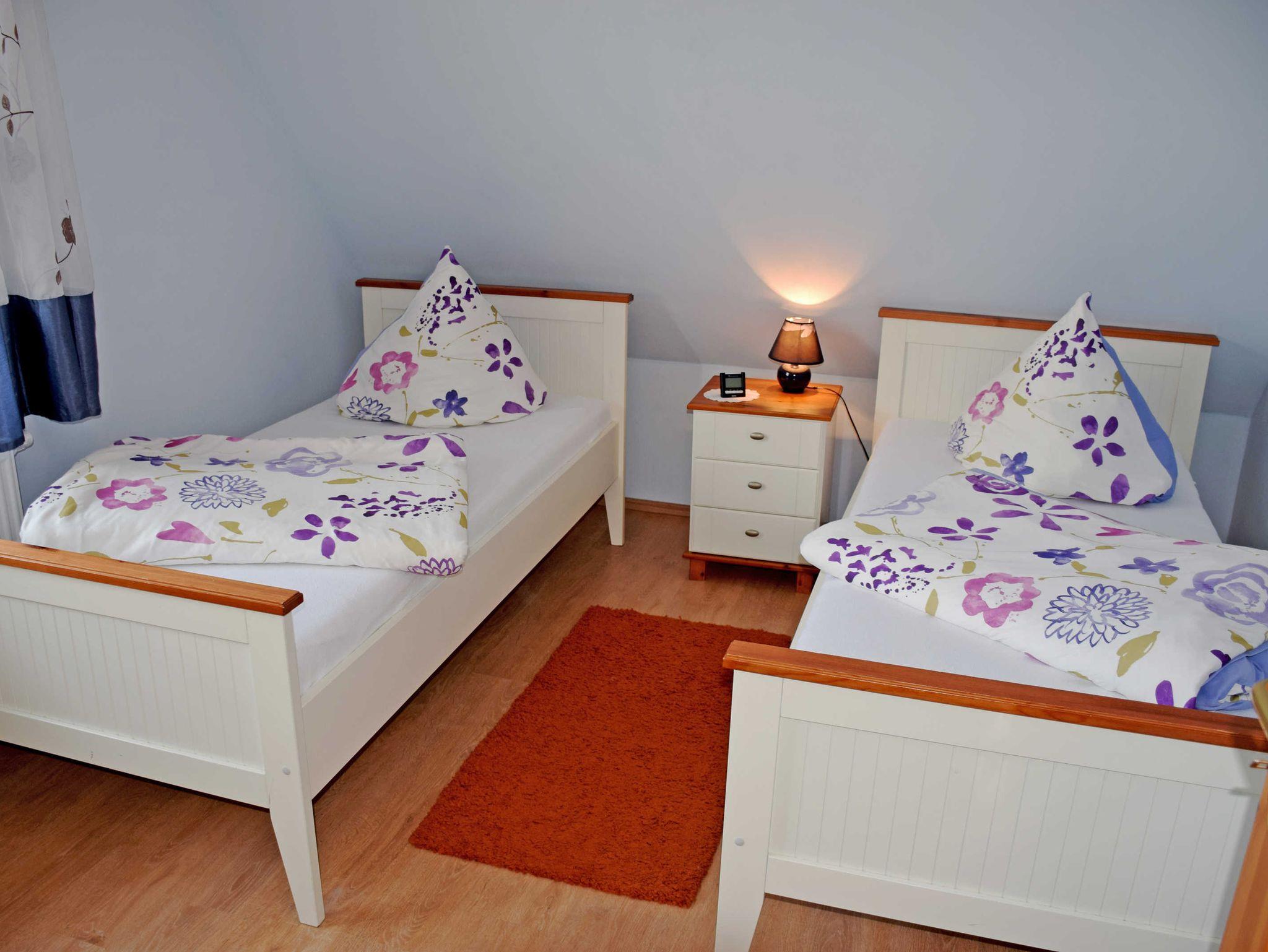 In der oberen Etage wurden für Sie 3 gemütliche Schlafzimmer eingereichtet (2 x Doppelbett, 1 x 2 Einzelbetten). Ein Schlafzimmer verfügt über Sat-TV. Das Badezimer ist mit Waschtisch, WC, Dusche und Badewanne ausgestattet.