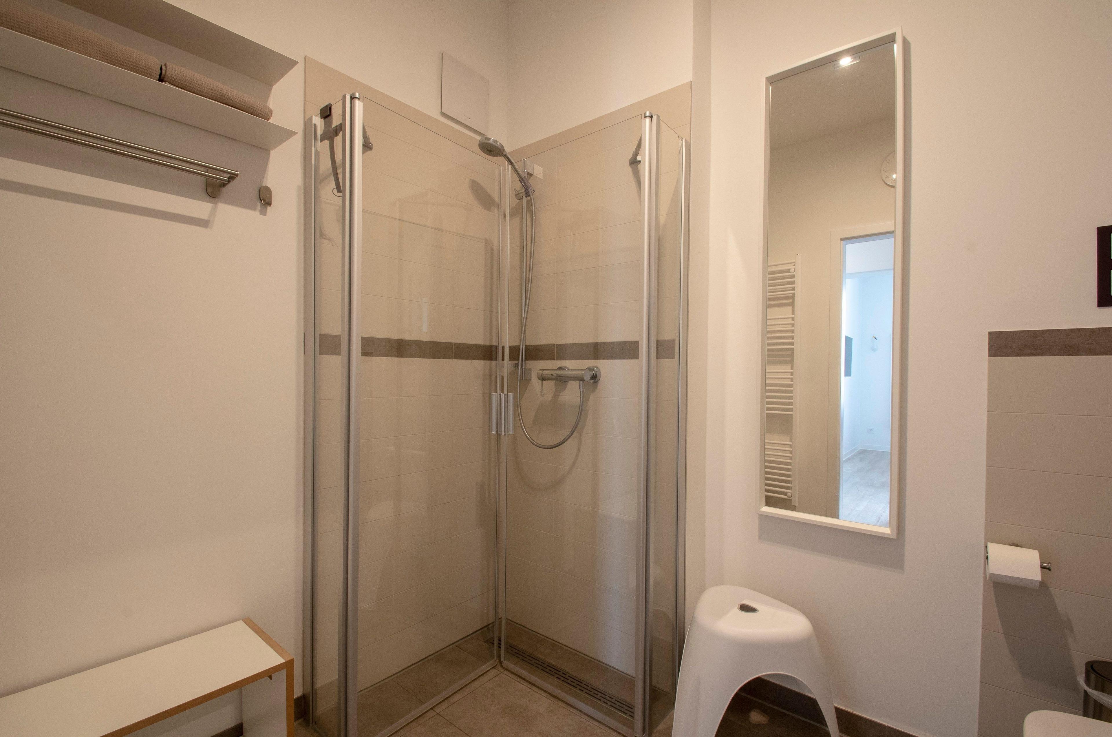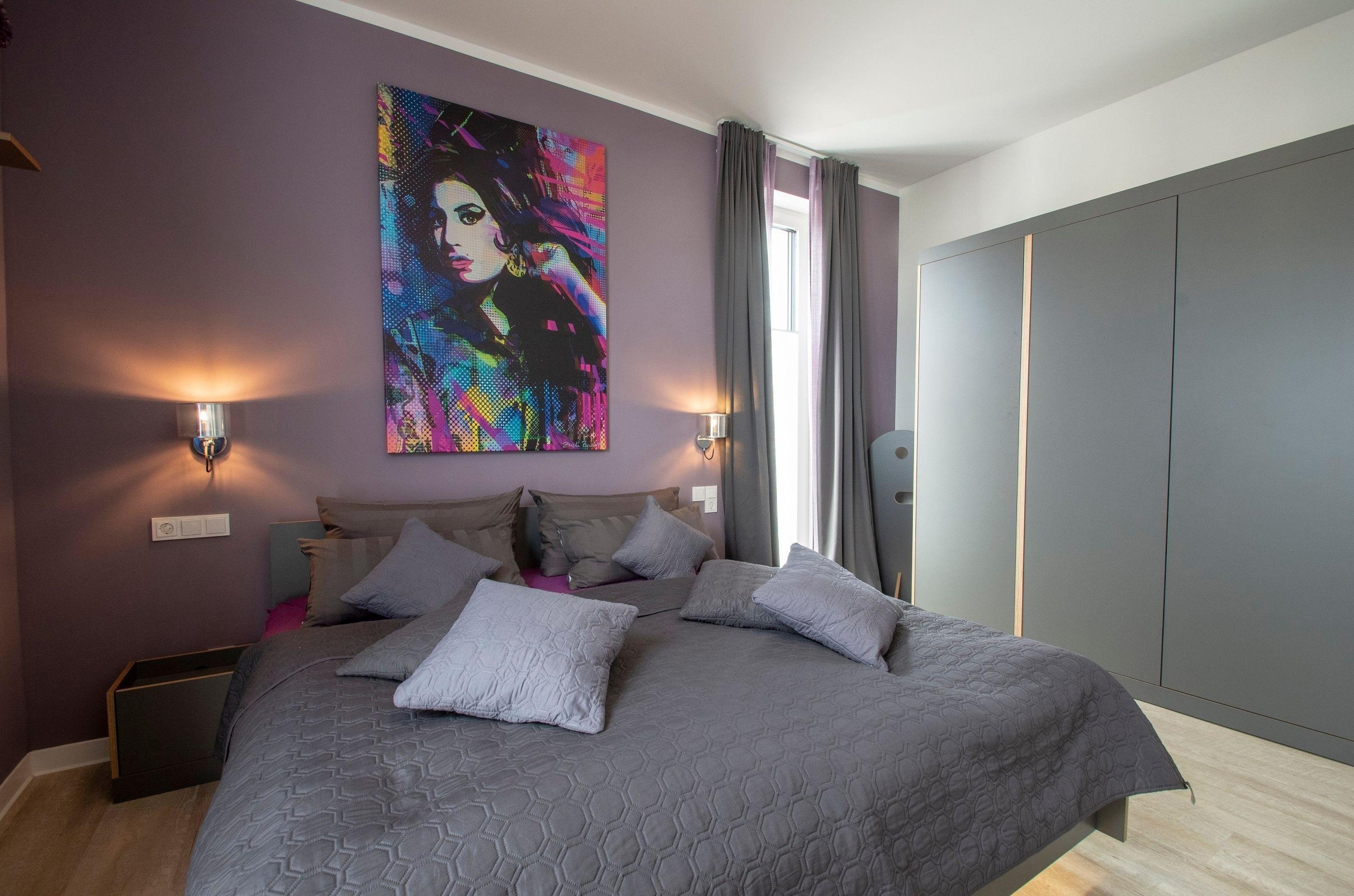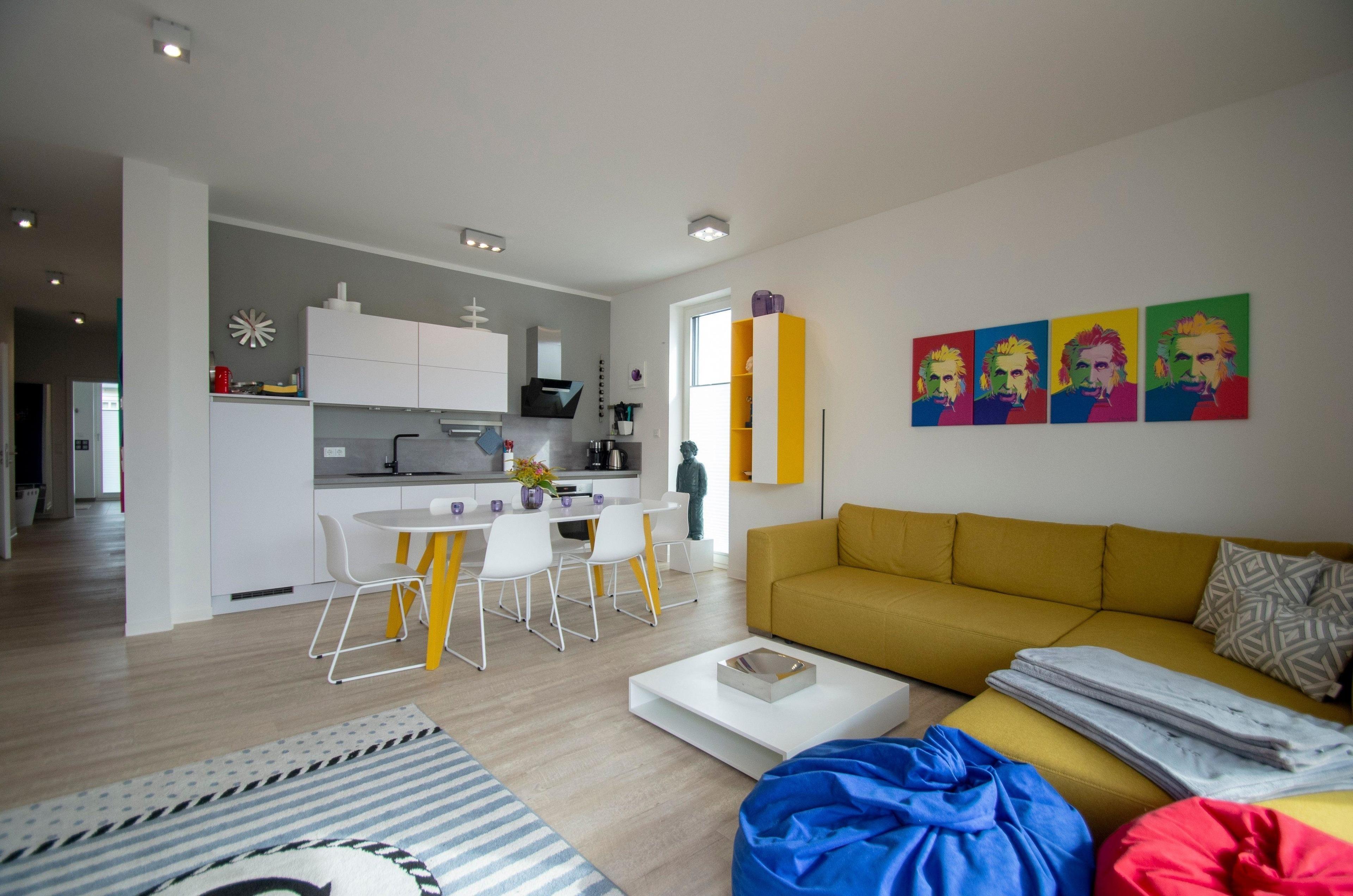 Individuell künstlerisch gestaltete lichtdurchflutete Räume, alle Fenster mit elektrischen Sonnenrollos ausgestattet. Die Betten im Albert-INN verfügen über hochwertige Matratzen und jeweils einen durchgehenden Topper für den excellenten Schlafkomfort, ganz wie zu Hause (Größe: 2 x 1,60 m und 1 x 1,80 m). Weiterer Platz für 2 Babybetten für Kinder bis 3 Jahre (kostenlos). Für die Unermüdlichen stehen im Albert-INN zwei Arbeitsplätze zur Verfügung und eine Exklusiv-Kooperation mit dem Coworking Space Lietzow. Alle Räume verfügen über ein kostenloses WLAN, Smart-TV der neusten Generation u.a. auch mit Netflix, AmazonPrime, Disney+. Das Wohnzimmer zum Chillen mit: großem Smart-TV, DVD-Player, Soundbar, Alexa, Bluetooth-Lautsprecher, NintendoWII, großem Essplatz, großem Eck-Schlafsofa (zusätzliche Schlafplätze a.A.). In der Küche finden alle Kochbegeisterten: eine Markenküche mit BOSCH-Einbaugeräten (Backofen mit Induktionskochfeld, Geschirrspüler, Mikrowelle) großen Kühlschrank mit Gefriermöglichkeit, Backutensilien, Nespresso + Milchaufschäumer, Mixer, WMF: Filterkaffeemaschine, Entsafter, Eierkocher, Wasserkocher, Smoothie-Shaker. Die beiden Bäder sind mit ebenerdigen Duschen hochwertig ausgestattet. Für die Kleinsten: Kinderspielboot und Playmobil Seeräuber warten auf große Abenteuer, Spiele, Bücher, Kleinkinderausstattung (Töpfchen, Treppchen, WC-Sitz, Hochstuhl, Kinderreisebetten mit Wickelauflage). Alle Räume mit hochwertigen Möbeln von deutschen Markenherstellern ausgestattet (Interlübke, Müllermöbel).