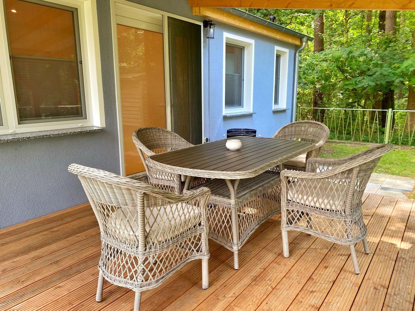Ruhiges Ferienhaus LieFlo am Waldrand nahe Strand und Ostsee mit großer Terrasse und Garten.