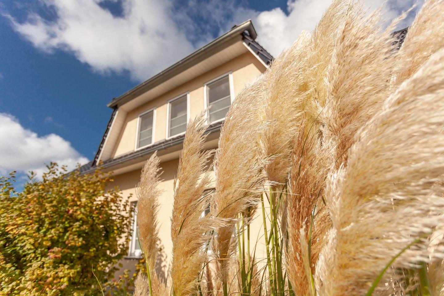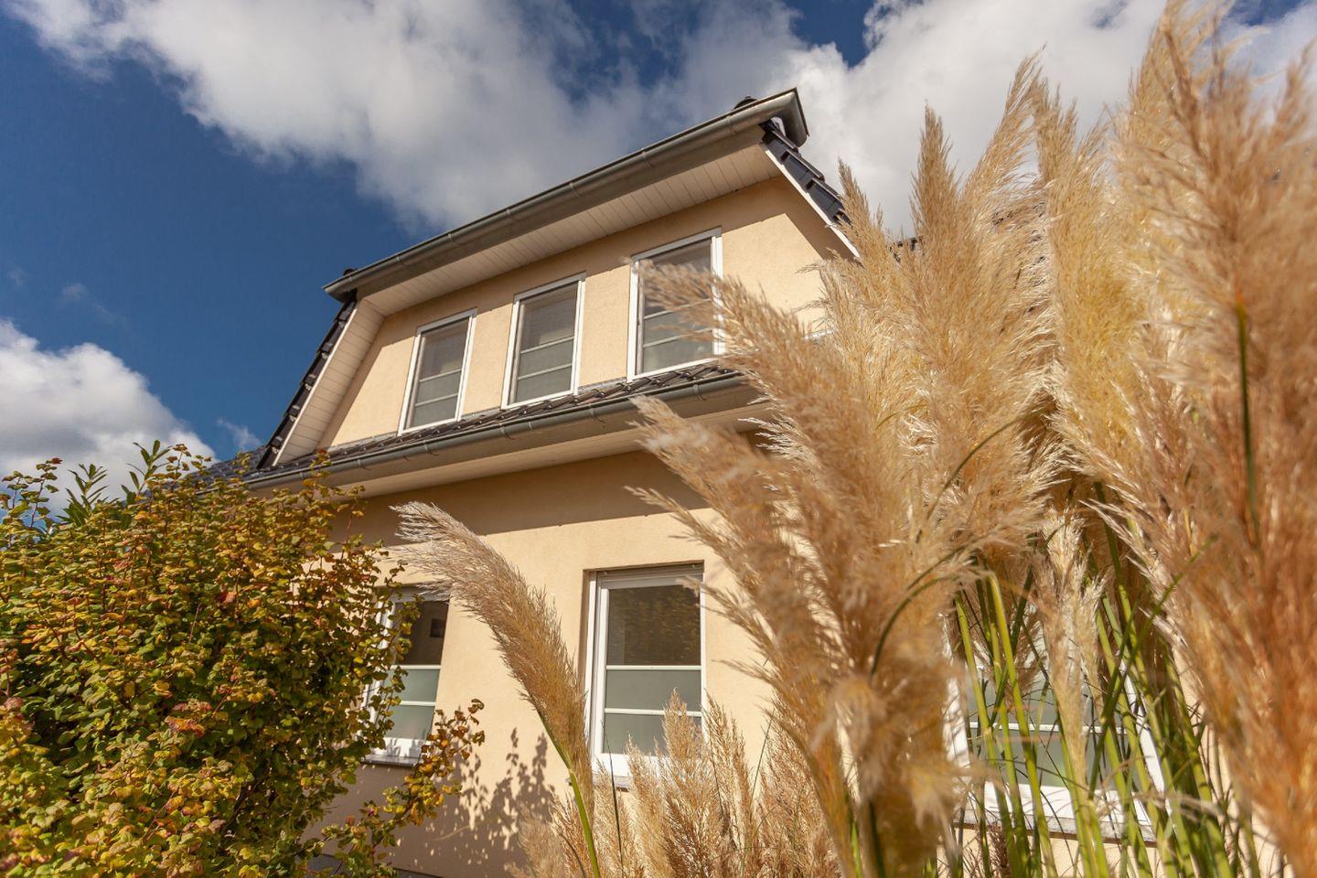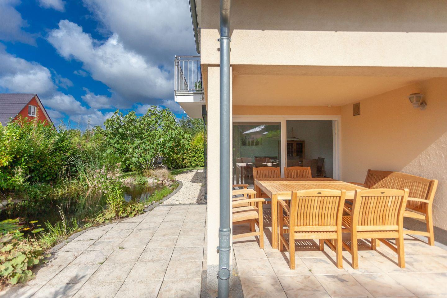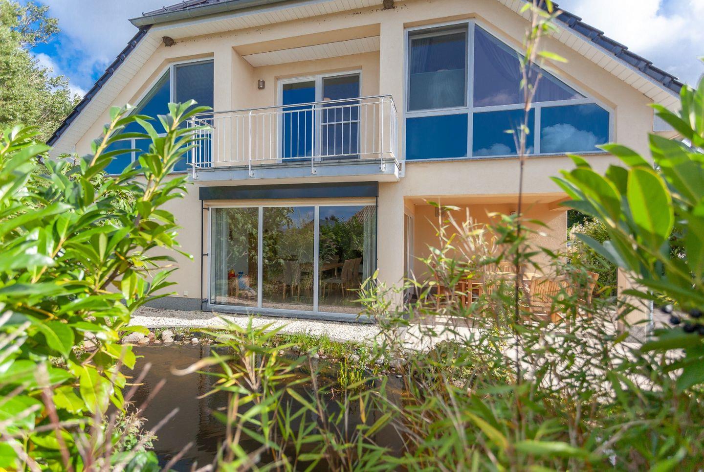 Im Ostseebad Glowe auf Rügen erwartet Sie das moderne Haus Eleganza, das mit großzügigem Garten und Platz für bis zu neun Gäste ideale Voraussetzungen für entspannte Urlaubstage mit Familie oder Freunden bietet. Auf der überdachten Terrasse lässt es sich wunderbar verweilen, während der gepflegte Garten mit seinem eingezäunten Teich ein besonderes Highlight darstellt. Hier genießen Sie Ruhe, Privatsphäre und viel Freiraum – und der feinsandige Ostseestrand ist nur etwa 600 Meter entfernt.