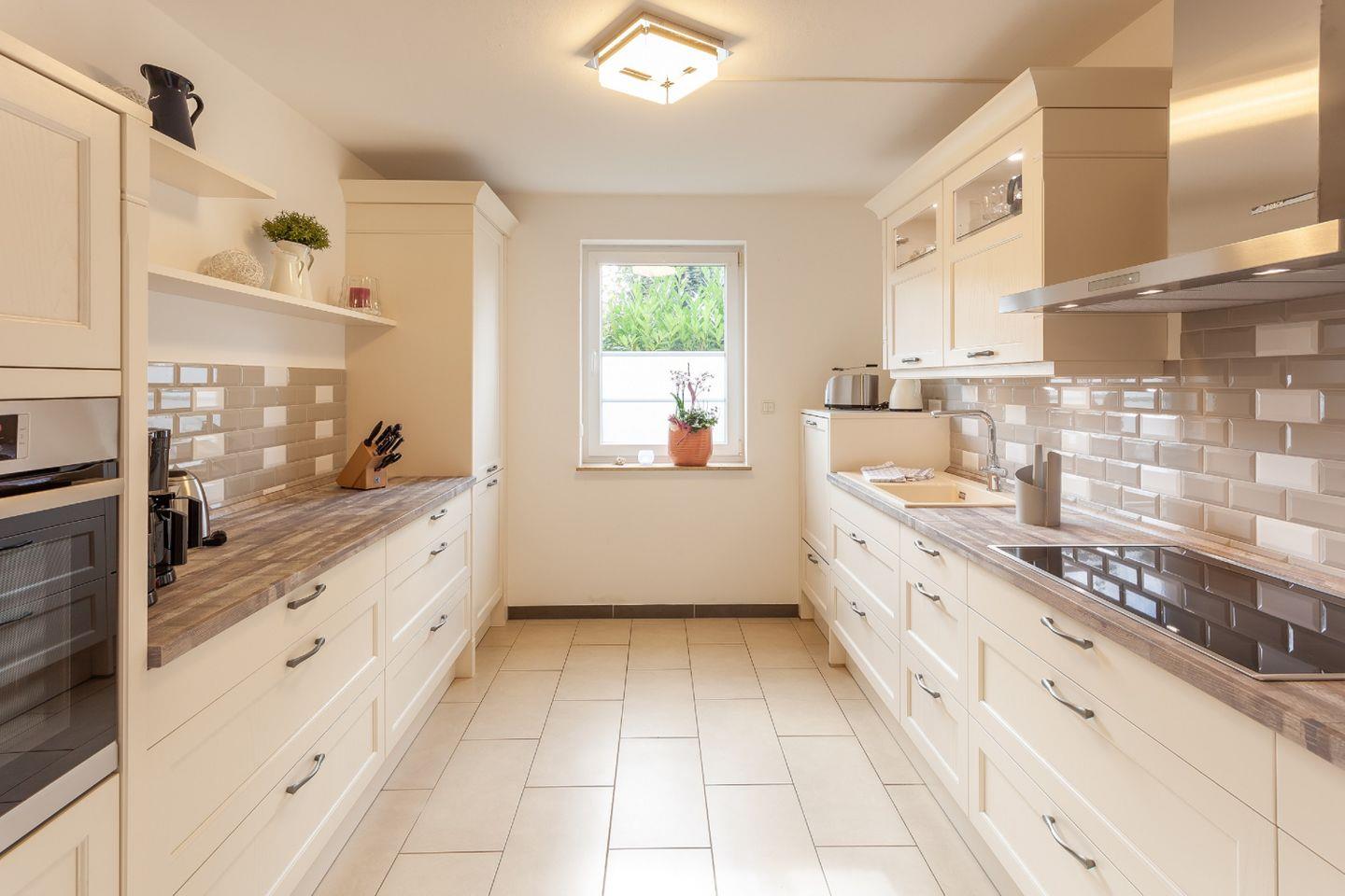 KÜCHE // separate Küche mit Esstisch, Induktionsherd, Mikrowelle, Spülmaschine, Kühlschrank, Backofen, Toaster, Wasserkocher, Kaffeemaschine, reichlich Besteck, Geschirr und Küchenutensilien ++
