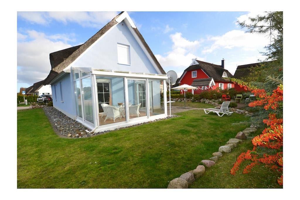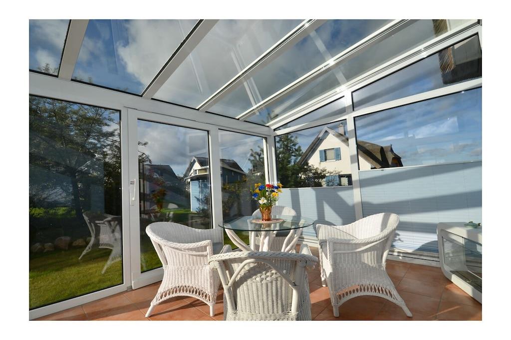 Komfortables Ferienhaus Blauer Stern auf Rügen mit WLAN, eingezäuntem Garten und Wintergarten lädt zum Entspannen ein.