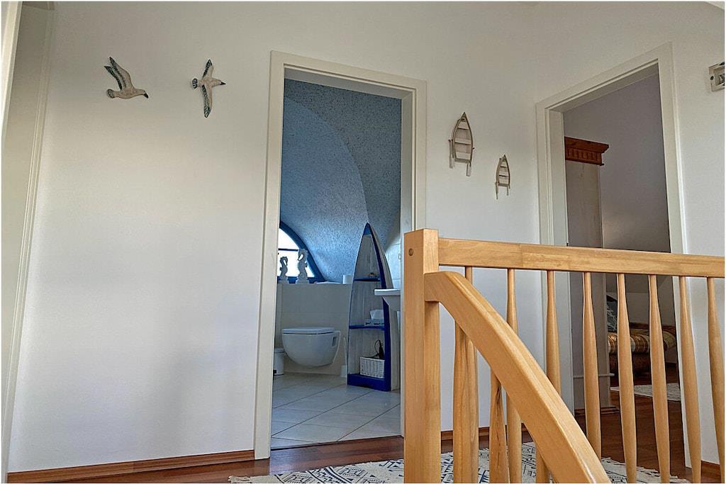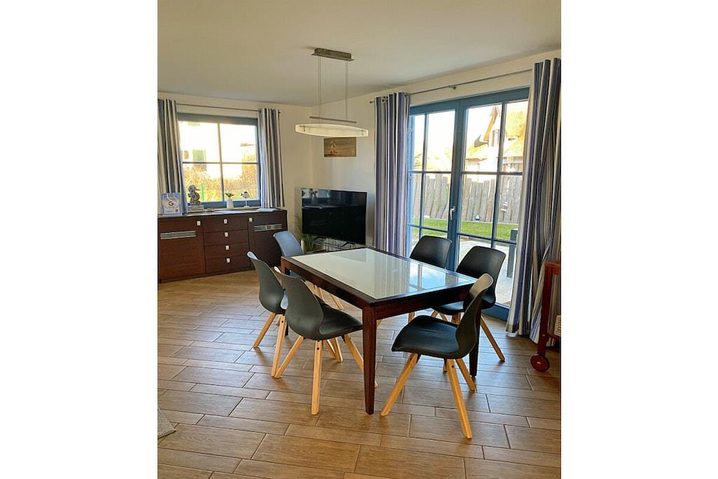 Erdgeschoss: großzügiger Wohn-, Essbereich mit Kamin und Fußbodenheizung, gemütliche Couchlandschaft mit Sessel, Smart-TV, Blu-ray Player, Internet (WLAN), Gesellschaftsspiele und Bücher für gemütliche Abende, komplett ausgestattete hochwertige Einbauküche mit 4-Plattenherd (Ceran), Backofen, Kühlschrank mit kleinem Gefrierfach, Geschirrspüler, Mikrowelle, Filterkaffeemaschine und Senseo Padmaschine und diversen Elektrogeräten, Zugang zum Wintergarten, 1. Badezimmer mit Dusche/WC, Sauna, Hauswirtschaftsraum mit Waschmaschine, Wäscheständer, Bügelbrett, Bügeleisen, Staubsauger und Kinderhochstuhl Obergeschoss: 1. Schlafzimmer mit einem Doppelbett (getrennte Matratzen jeweils 90 x 200 cm), Kleiderschrank und Kinderreisebett mit Matratze, Schlafcouch für Kinder bis 12 Jahre geeignet (80 x 200 cm), 2. Schlafzimmer mit einem Doppelbett (getrennte Matratzen jeweils 90 x 200 cm), Kleiderschrank, Schlafcouch für Kinder bis 12 Jahre geeignet (80 x 200 cm), in den Schlafzimmern sind Insektenschutzgitter vorhanden, Badezimmer mit Badewanne, Dusche, WC und Steckerradio Außenbereich: Terrasse mit gemütlichen Gartenmöbeln (6 Gartenstühle und 2 Liegestühle) und großem Sonnenschirm, Grillmöglichkeit besteht (Grill vorhanden), Garten komplett mit 0,80m hohen Zaun umgeben, Kinder- und Hunde freundliches Ferienhaus, 2 PKW Stellplätze direkt am Objekt, überdachte verschließbare Fahrradabstellmöglichkeit (Gartenhaus) vorhanden Strand und Sonne genießen im schönen „Seepferdchen“ Das gemütliche Ferienhaus „Seepferdchen“ befindet sich im Erholungsort Glowe in idealer Strandlage. Der naturbelassene Ostseestrand und auch der Yachthafen sowie der wunderschöne kilometerlange weiße Sandstrand sind nur wenige Gehminuten von Ihrem Feriendomizil entfernt. Das Grundstück umfasst ca. 550 qm. Unser Ferienhaus „Seepferdchen“ mit ca. 100 qm bietet alles, was sich das Urlauberherz wünscht. Angefangen bei der gemütlichen Couchlandschaft mit Kamin, eine sehr gut ausgestattete Küche finden Sie im Erdgeschoss weiterhin noch eine klassische Aufgusssauna mit eigener Dusche. Im Obergeschoss befinden sich die beiden Schlafzimmer mit Insektenschutz und ein großes Badezimmer mit Dusche und Badewanne. Jede Menge Spaß und Abenteuer für die Kleinen, bietet der neu angelegte Spielplatz im Kurpark. Nach einem Ausflug zu einer der vielen Sehenswürdigkeiten der Insel Rügen, können Sie die Terrasse mit Garten-, Liegestühlen nutzen um den Abend gemütlich ausklingen zu lassen. Das Ferienhaus „Seepferdchen“ ist ein Nichtraucherhaus. Einkaufsmöglichkeiten, Bäcker, Restaurants und ein Getränkehandel befinden sich in unmittelbarer Nähe. Optimale Rad- und Wandermöglichkeiten um die Insel zu erkunden runden das Angebot ab. Zugang zum beheizten Wintergarten ausgestattet mit Tisch, 6 Stühlen und einen Elektrokamin. Bei uns sind Hunde willkommen! (Gebühr Euro 10,-/ pro Hund/ pro Nacht).