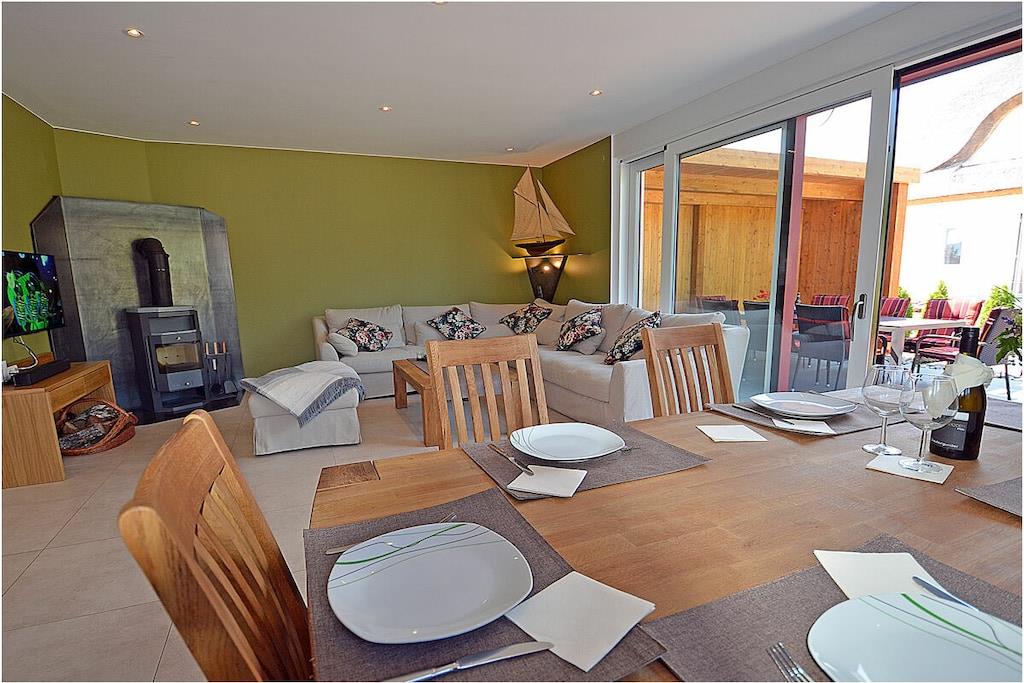 Komfortables Ferienhaus Meeresrauschen 18a in Glowe mit Sauna, Kamin und modernem Ambiente für erholsame Urlaubstage.