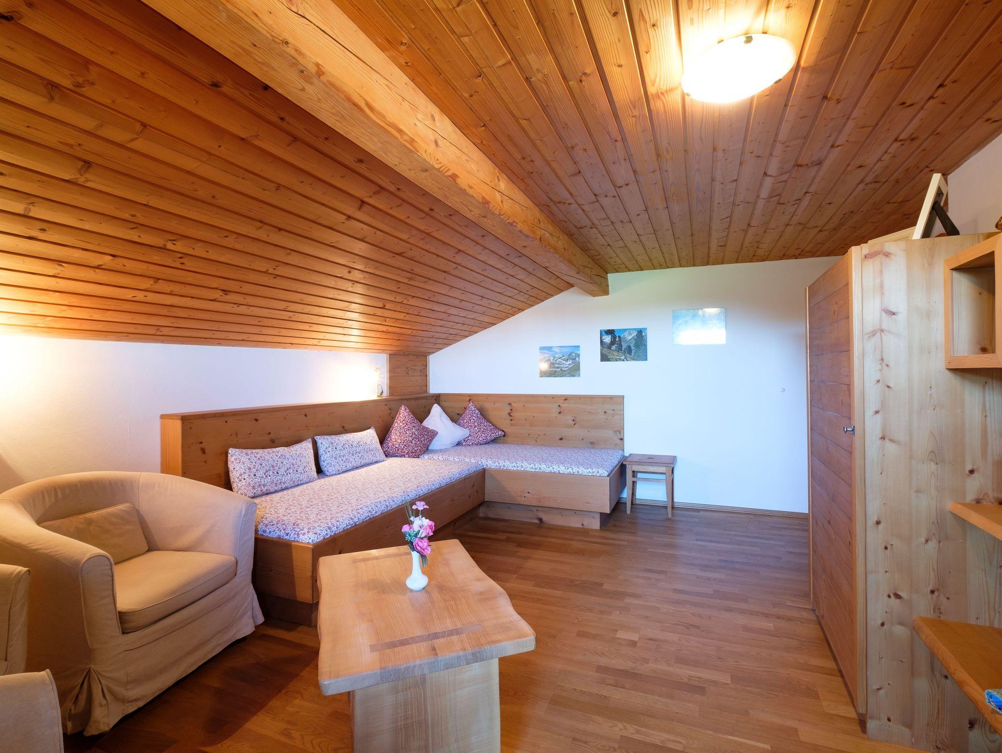 Genießen Sie Ihren Urlaub in unserer gemütlichen ***Familienwohnung. Sie liegt im 2. Obergeschoss mit leichter Dachschräge. Die Wohnung für 4 Personen ist 60 m² groß und verfügt über 2 getrennte Schlafräume. Sie hat außerdem einen sehr geschützten Ostbalkon, eine geräumige Wohnküche mit kompletter Ausstattung incl. Spülmaschine. Im Wohnzimmer mit Sitzecke, SAT-TV und Safe, können die zwei Sofas mit richtigen Matratzen zu Betten umfunktioniert werden. Im Schlafzimmer mit Doppelbett besteht die Zustellmöglichkeit für 1 Kinderbett. Dusche und WC, Diele mit Garderobe. Bett- und Tischwäsche sowie Hand- und Duschtücher inklusive. Auf Wunsch Kinderbett und Hochstuhl für unsere kleinen Gäste. Kostenloses W-LAN