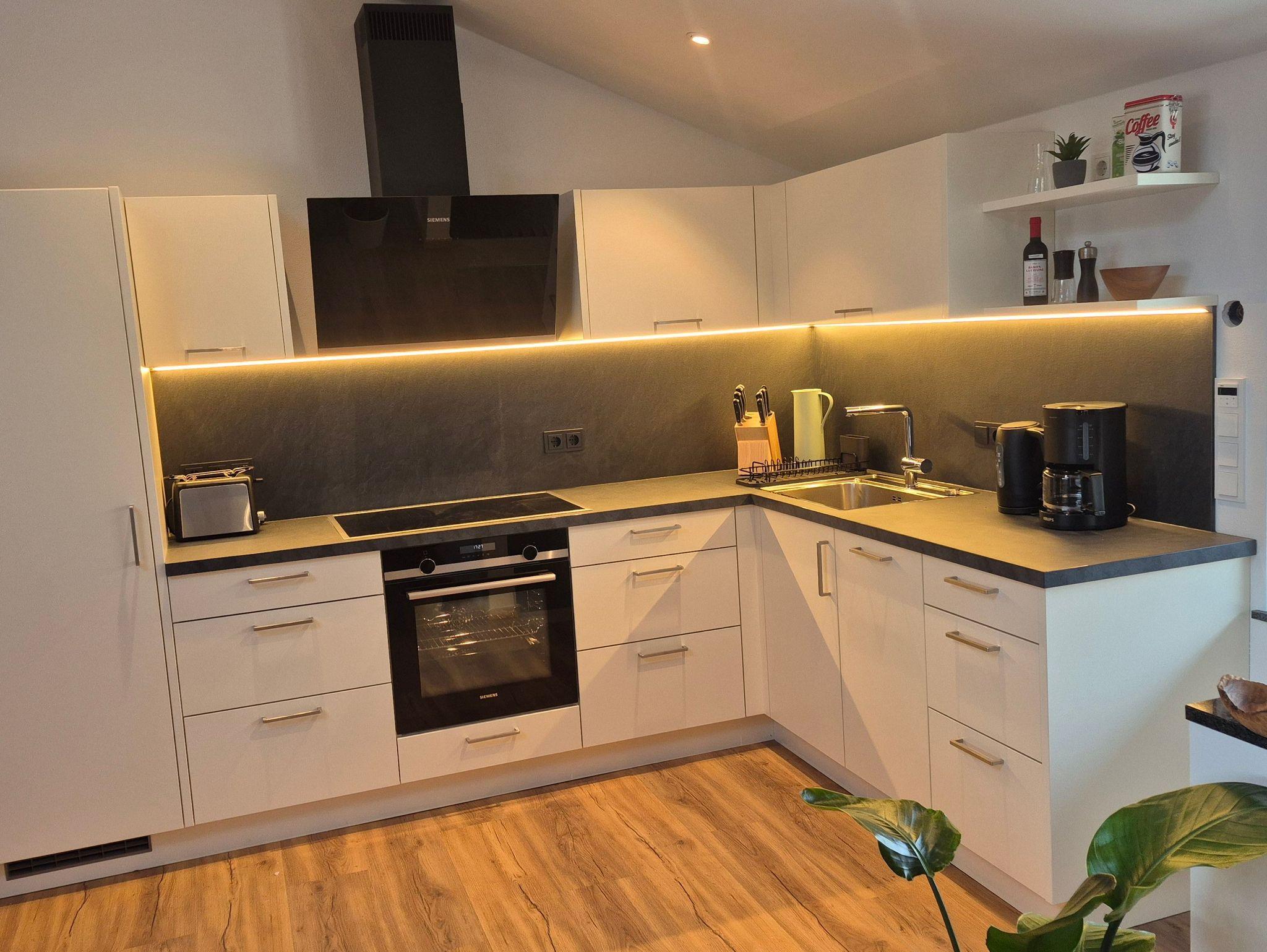Die Ferienwohnung ist modern warm mit Holzböden und