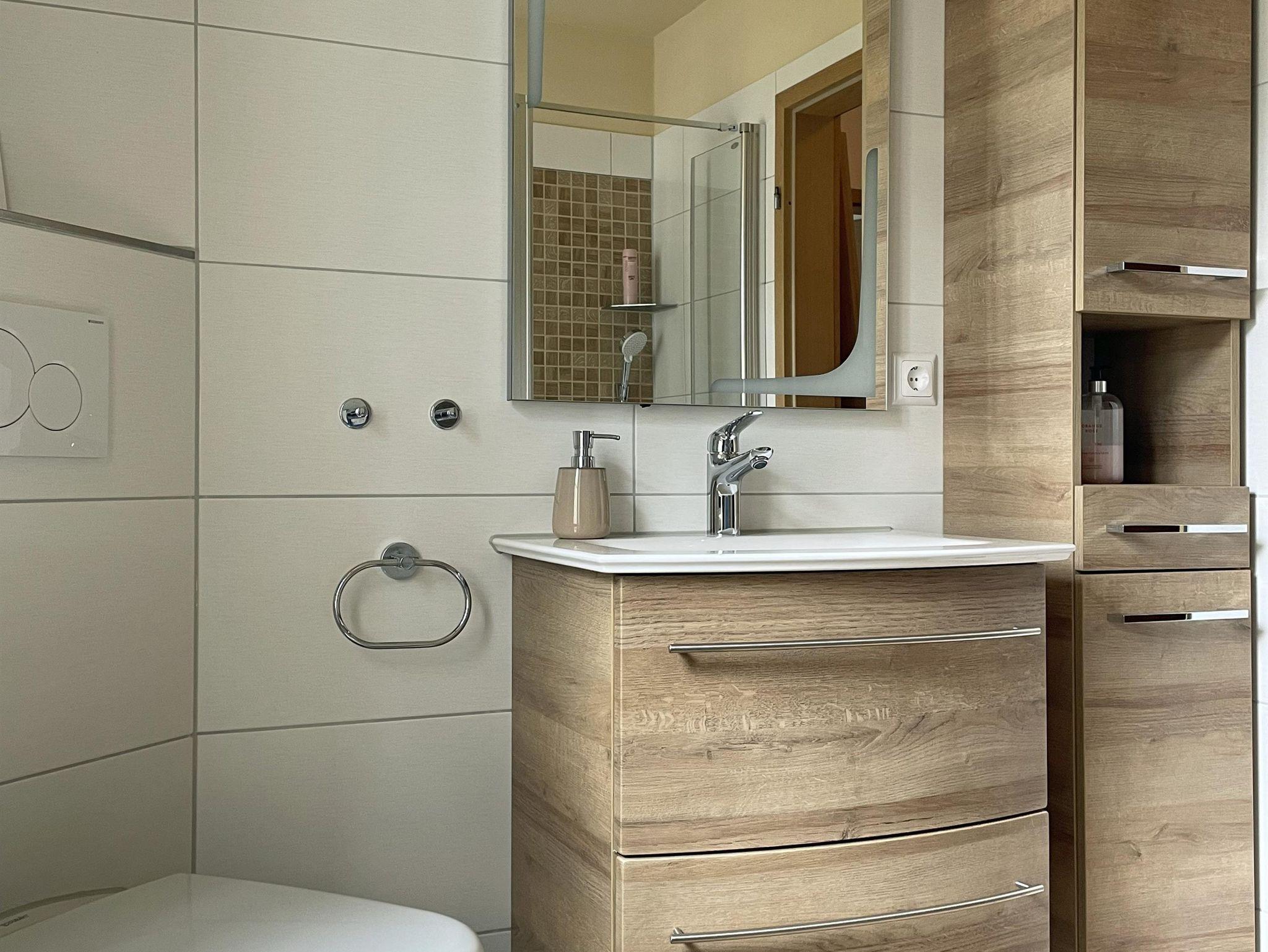 Auf 64 m² erwartet Sie ein gemütliches Zuhause auf Zeit. Sie haben kostenloses WLAN. Genießen den Komfort einer komplett ausgestatteten Küche mit Geschirrspüler. Bei Bedarf stehen im Wohnraum auf einer ausziehbaren Couch weitere Übernachtungsmöglichkeiten für, bis zu 2 Personen, zur Verfügung. Das Badezimmer ist modern saniert, und mit einer Dusche auf Fußbodenebene ausgestattet. Der Schlafraum ist mit drei Betten eingerichtet. Auf der Loggia können Sie Ihr morgendliches Frühstück genießen. Eine im Grundstück freiliegende Terrasse lädt mit Grillmöglichkeit zu gemütlichen Abenden ein. Ihre Fahrräder werden sicher unter Verschluss abgestellt. Eine Parkmöglichkeit für Ihren PKW ist ebenfalls vorhanden.