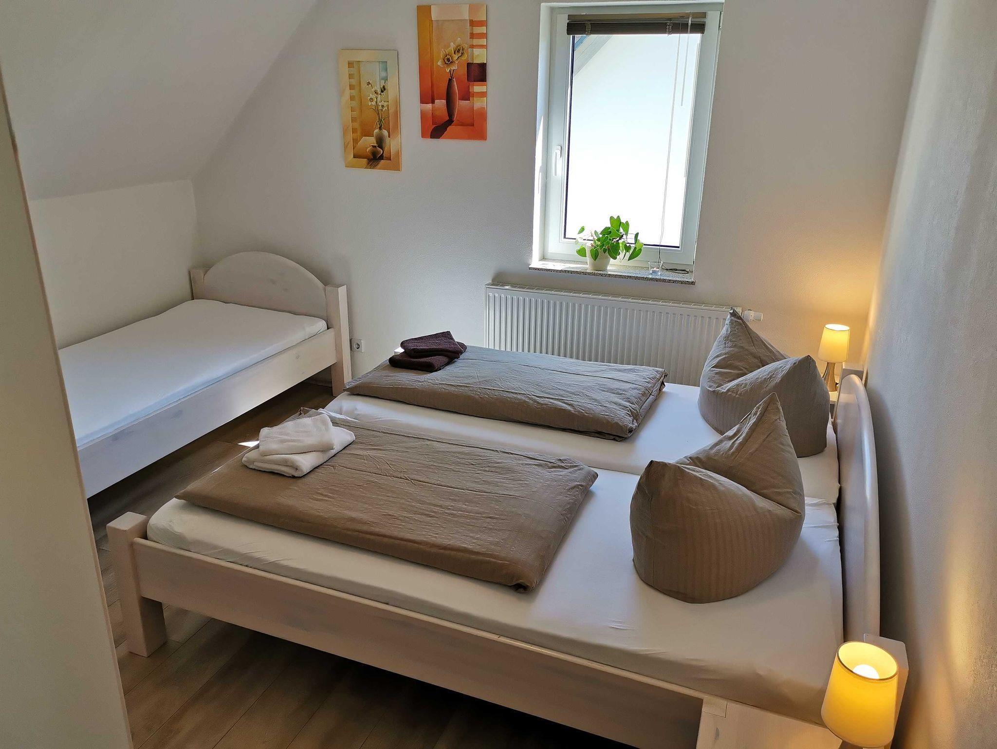 2 Schlafzimmer mit Doppelbetten und zusätzlich 1 Einzelbett