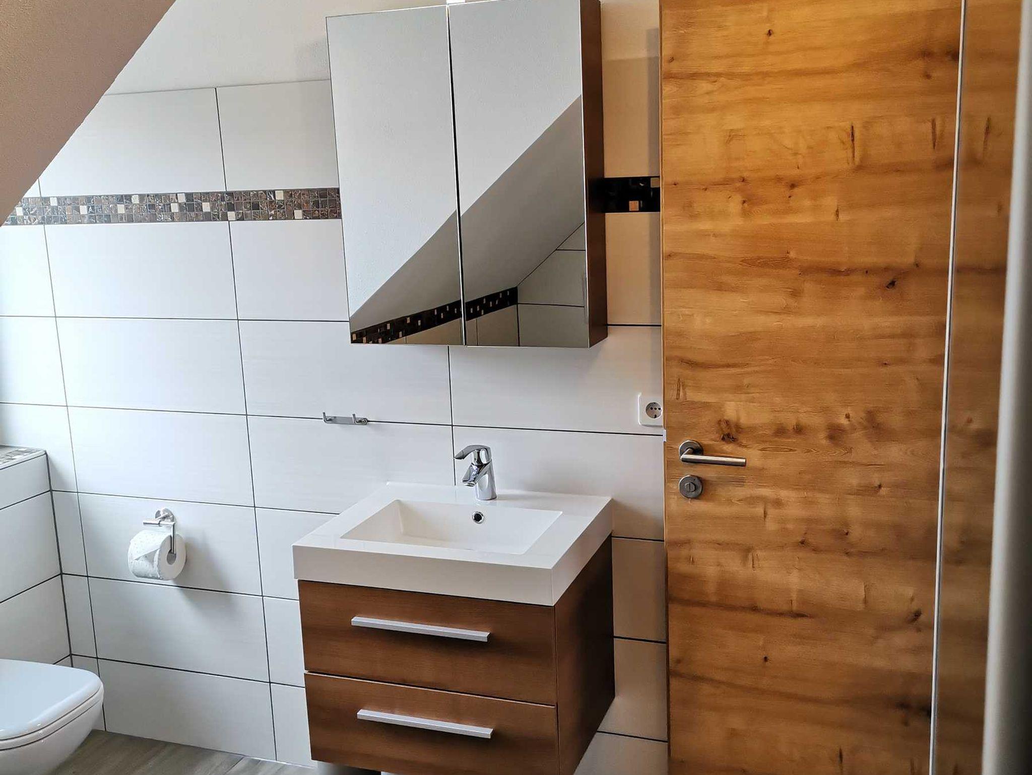Von der Küche aus gelangen Sie direkt auf die Terrasse bzw. den Balkon. Waschmaschine und Trockner befinden sich im separaten Wirtschaftshaus.