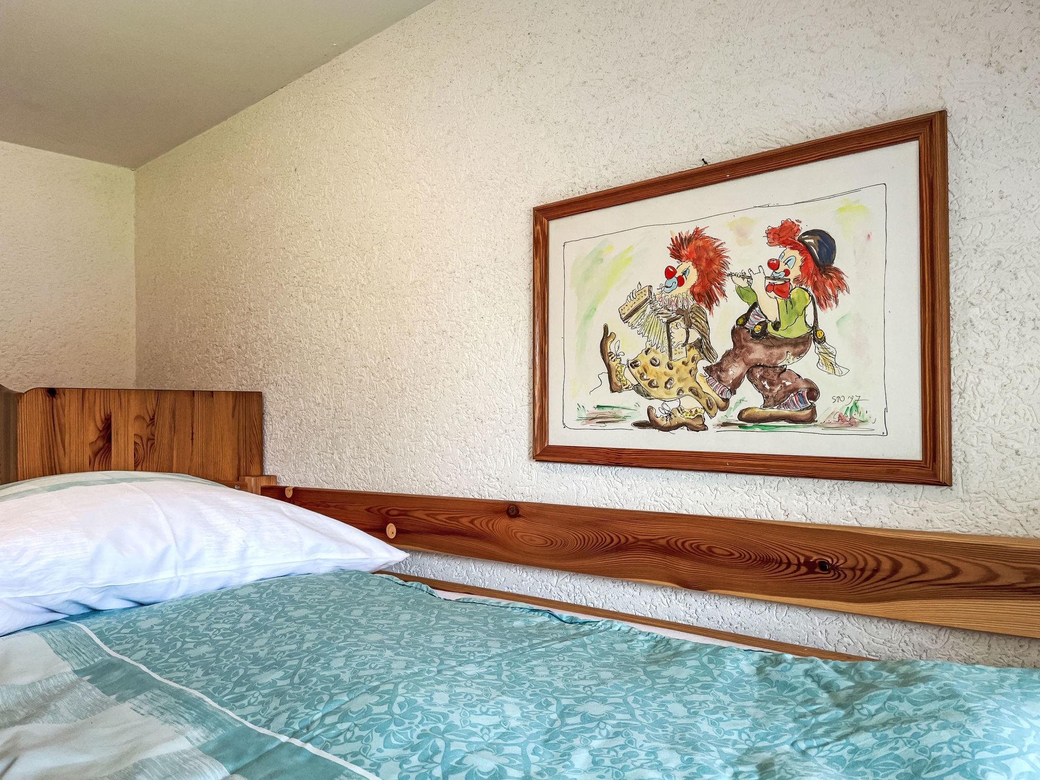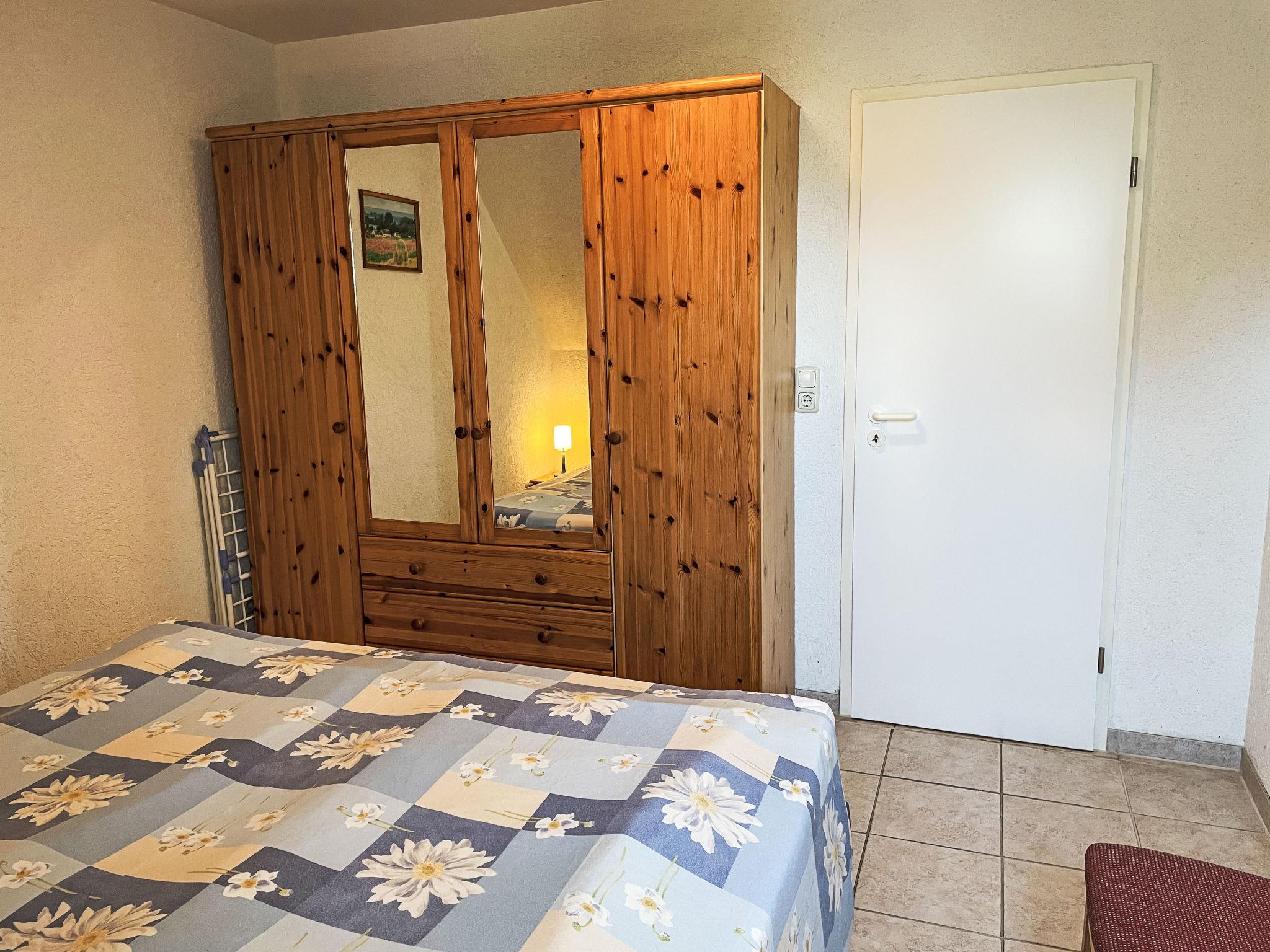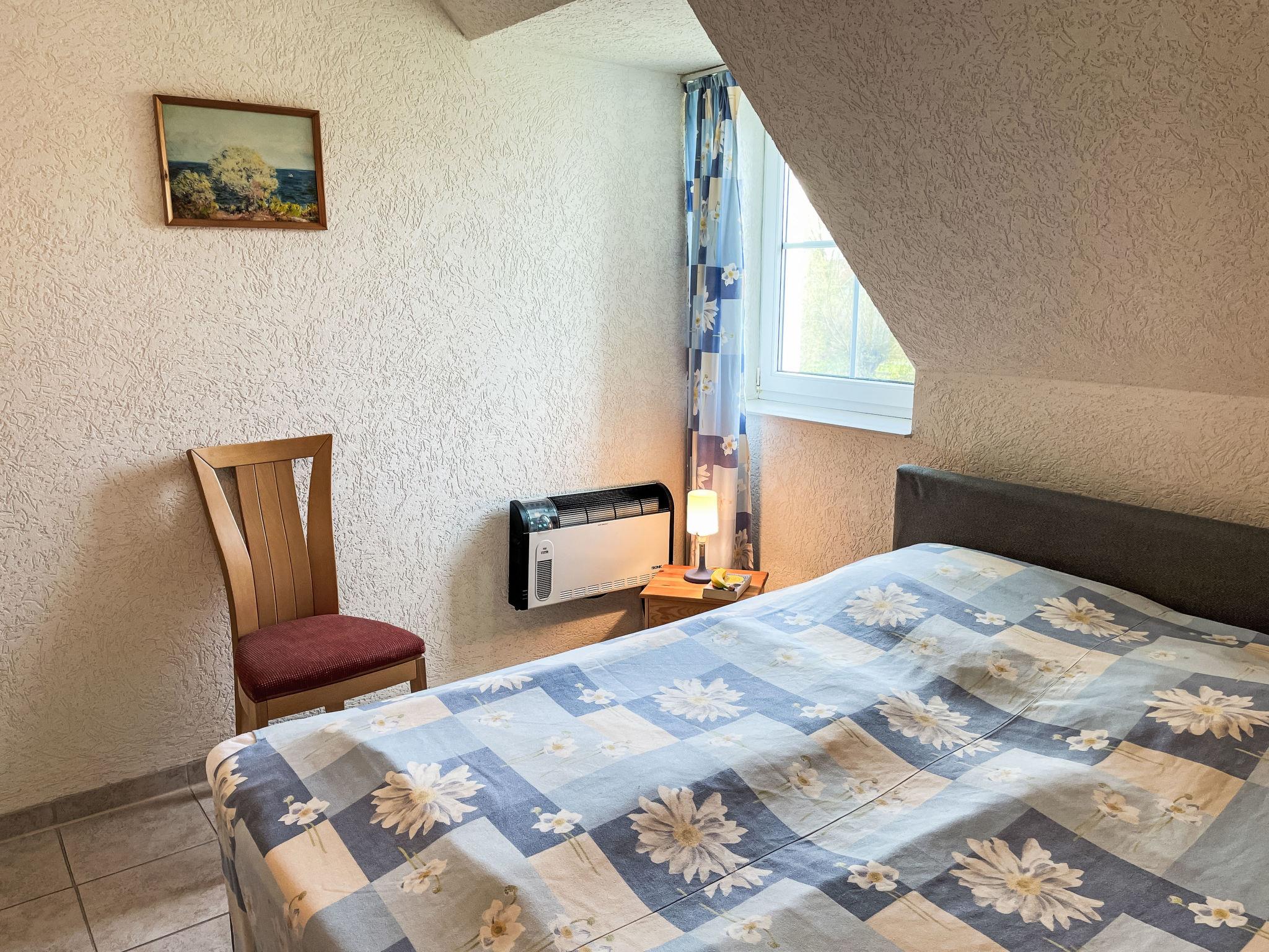 3-Zimmer-Wohnung 50 m2 im 1. Stock. Teilweise abgeschrägt: Wohn-/Esszimmer mit Sat-TV (Flachbildschirm), CD. Ausgang zum Balkon. 1 Zimmer mit 1 Doppelbett (180 cm, Länge 200 cm). 1 Kinderzimmer mit 1 Bett (90 cm, Länge 200 cm), 1 Schlafmöglichkeit (80 cm, Länge 200 cm). Kochnische (Backofen, 4 Glaskeramikplatten, elektrische Kaffeemaschine). Dusche/WC. E-Heizung. Kleiner Balkon 5 m2, Südlage, kleiner Balkon 5 m2, Westlage. Balkonmöbel. Zur Verfügung: Internet (Wireless LAN, gratis). Bitte beachten: Nichtraucher-Unterkunft. Rauchmelder. Die Schlafmöglichkeit im Kinderzimmer ist ein Ausziehbett (Tandembett).
