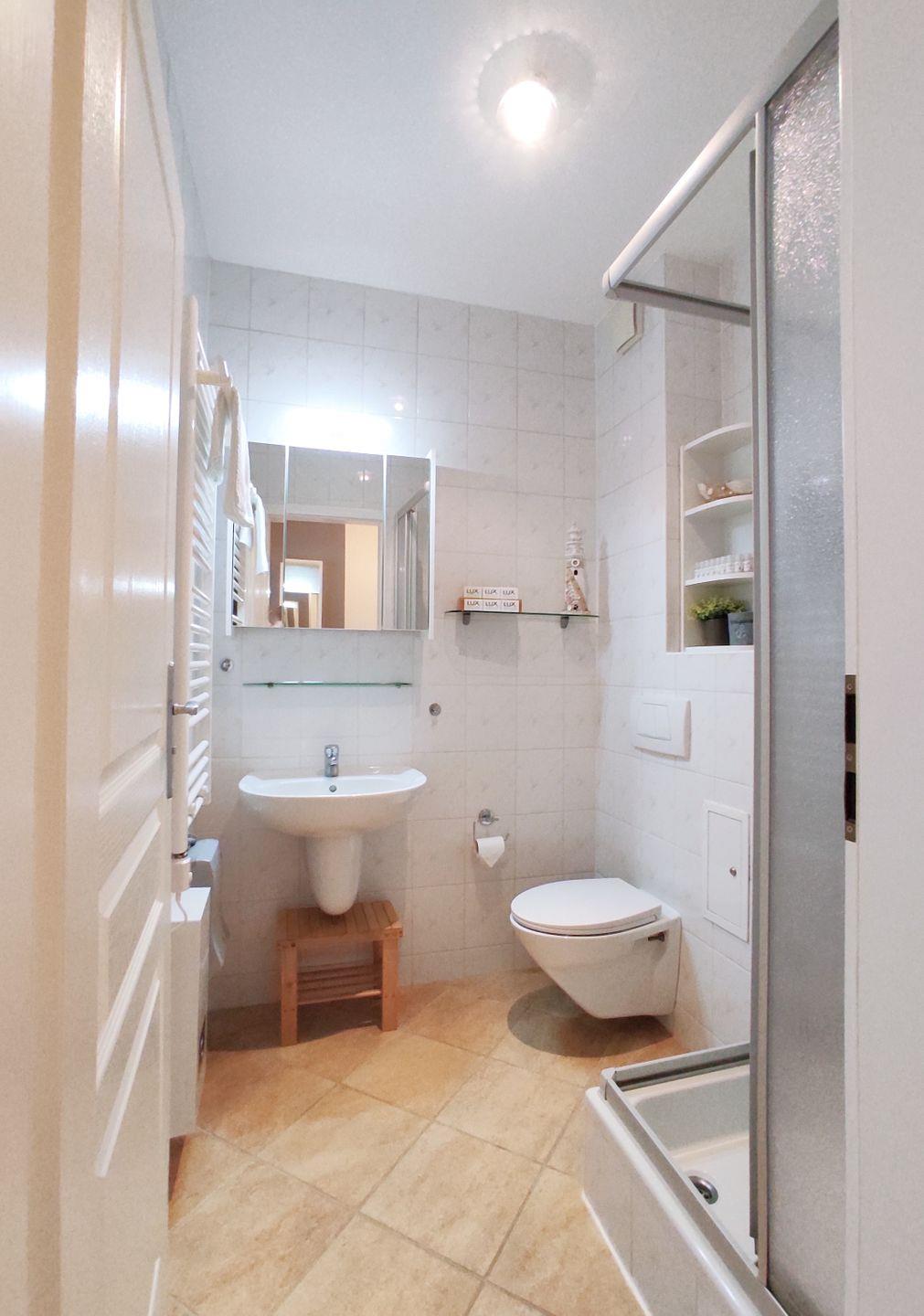 Die Ferienwohnung bietet auch Zugang zu einem gemeinschaftlichen Garten, einer Liegewiese und einem Strandkorb, die perfekt sind, um die Sonne und die frische Luft zu genießen. Für die kleinen Gäste gibt es einen Spielplatz, auf dem sie sich austoben können.
