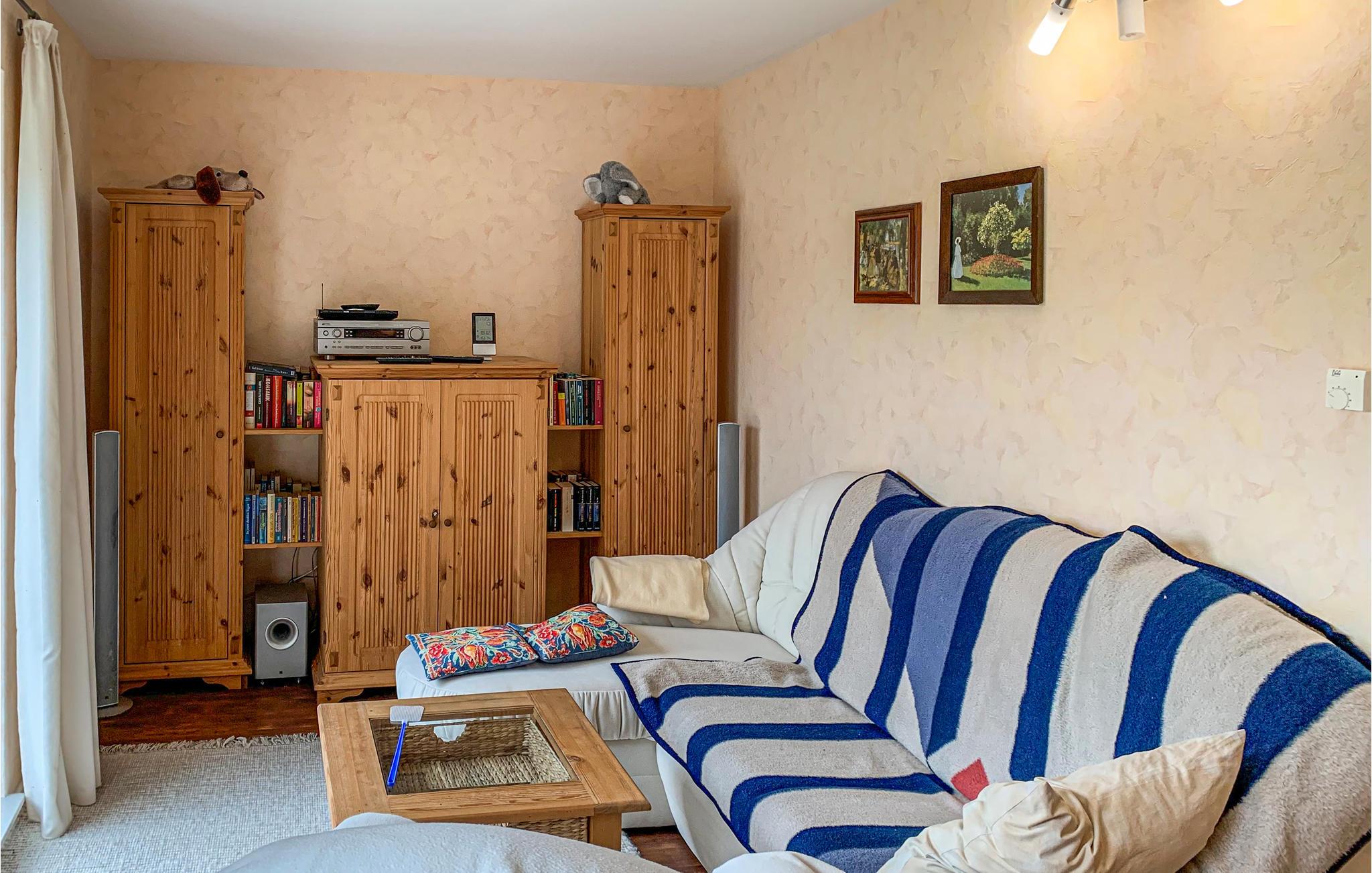 Beim Betreten der Wohnung haben Sie im großen Wohnschlafraum eine kleine Küche mit Ceranfeld und Geschirrspüler, den Essbereich und den einladenden Wohnraum mit einem bequemen Schlafsofa. Zwischen Bad und Schlafzimmer ist in die Nische geschickt ein geräumiger Schrank und Anrichte mit Mikrowelle plus Ofen eingebaut. Rechts davon ist das Duschbad und links das separate Schlafzimmer. Die Wohnung verfügt über einen Flachbild-Fernseher, CD Radio, Kaffeemaschine, Wasserkocher, Toaster, Mikrowelle etc., sodass Sie hier einen entspannten Urlaub verbringen können.