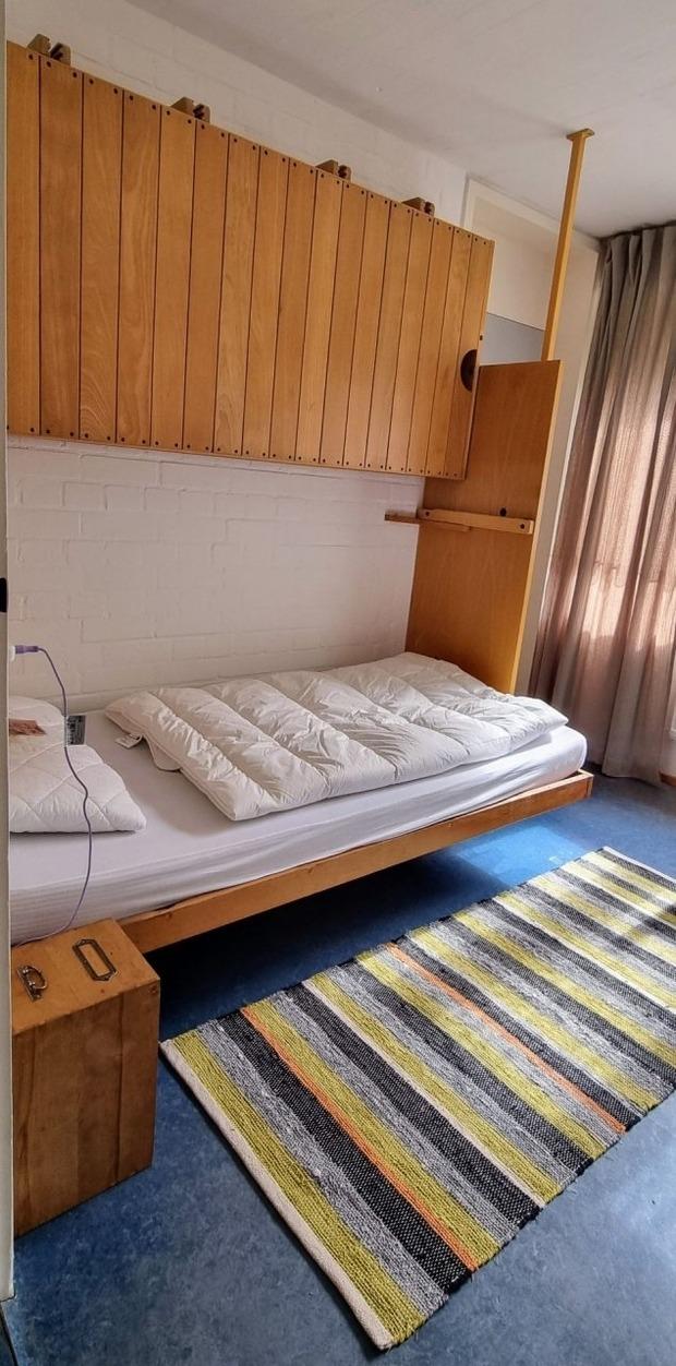 Dieses Zimmer verfügt über ein Einzelbett und zwei Klappbetten, darüber und seitlich, so dass bis zu 3 Gäste übernachten können. In diesem Zimmer hat es ein eigenes WC und Waschbecken. Ein LAN-Anschluss und WLAN sind vorhanden.