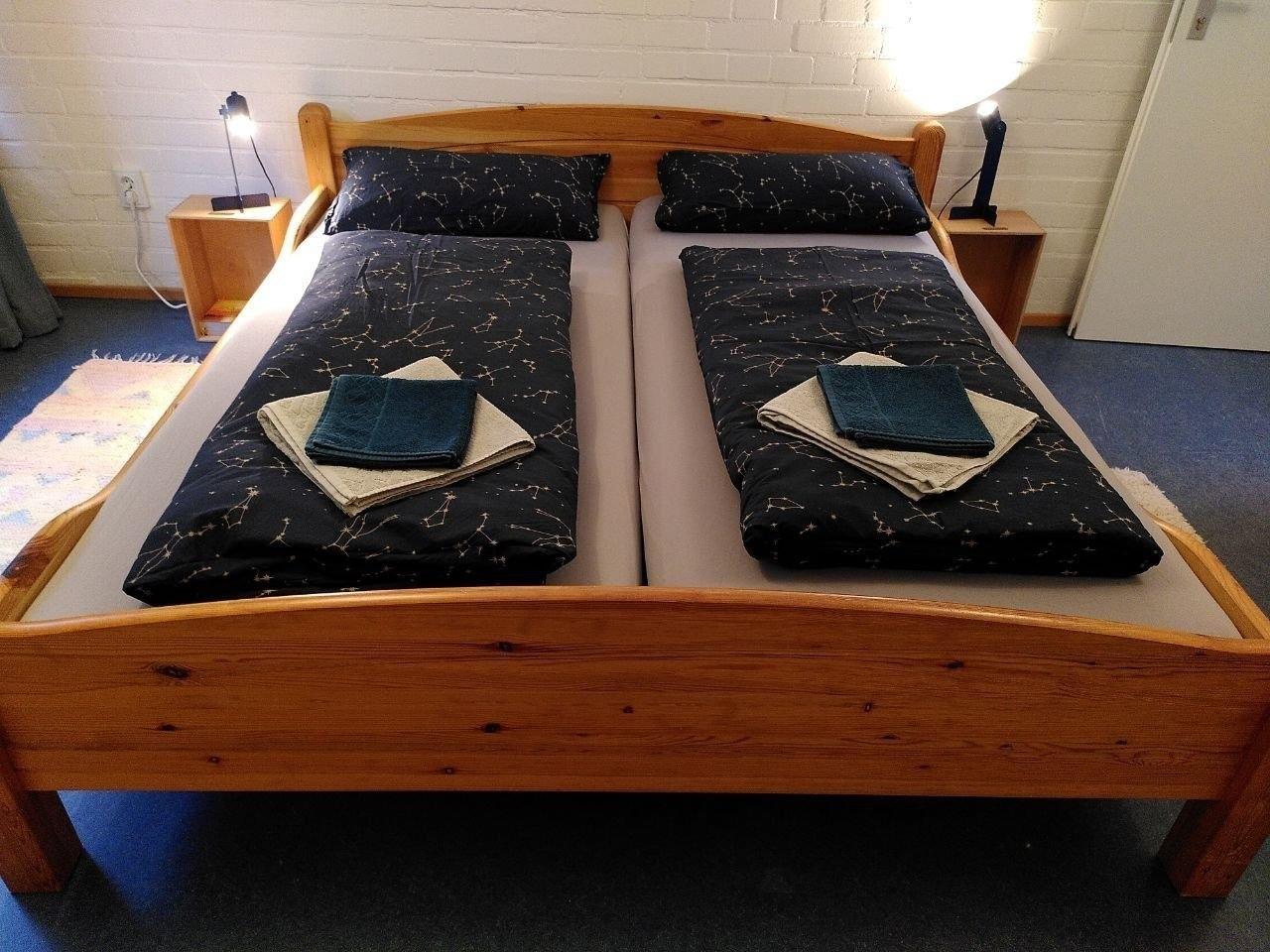 Dieses Zimmer verfügt über ein großes Doppelbett. Ein eigener LAN-Anschluss und WLAN sind vorhanden. Zwei Gemeinschaftsbäder mit je einer Dusche und WC liegen auf der selben Etage, ein weiteres Bad mit 2 Duschen und 2 WCs einen Stock höher.