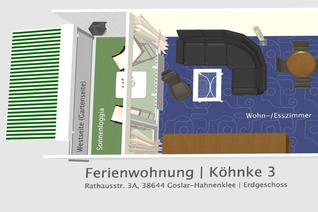 Auf etwa 54 lichtdurchfluteten qm im Erdgeschoss bieten wir Ihnen ein komfortables Schlafzimmer mit Elektro-Boxspringbett, Flachbild-TV und großem Kleiderschrank, ein großes helles Wohn-/Esszimmer mit Ambientebeleuchtung, Stressless-Relaxsessel, bequemer Couch, Flachbild-TV, Dolby-Surround-System, PlayStation 3, Zugang zu einer Sonnenloggia (Balkon, trotz Erdgeschoss dank Hanglage) mit Sonnenmarkise, eine moderne separate Einbauküche mit kombiniertem Mikrowellenbackofen, Spülmaschine, Kühlschrank, Induktionskochfeld & Kaffeevollautomat und ein modernes Duschbad. Parkplatz, WLAN, Bettwäsche, Handtücher, Bademäntel - alles gratis dabei!