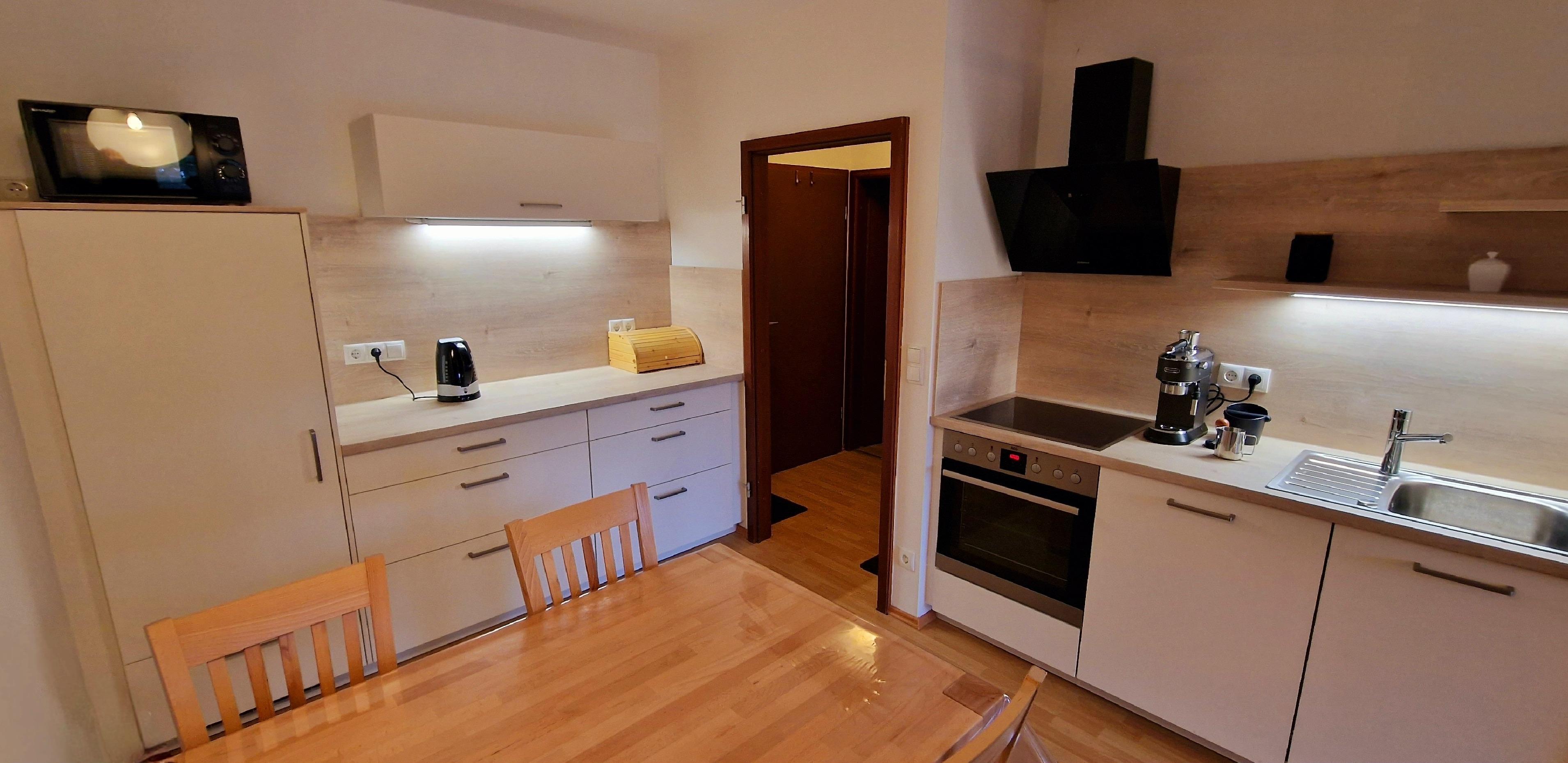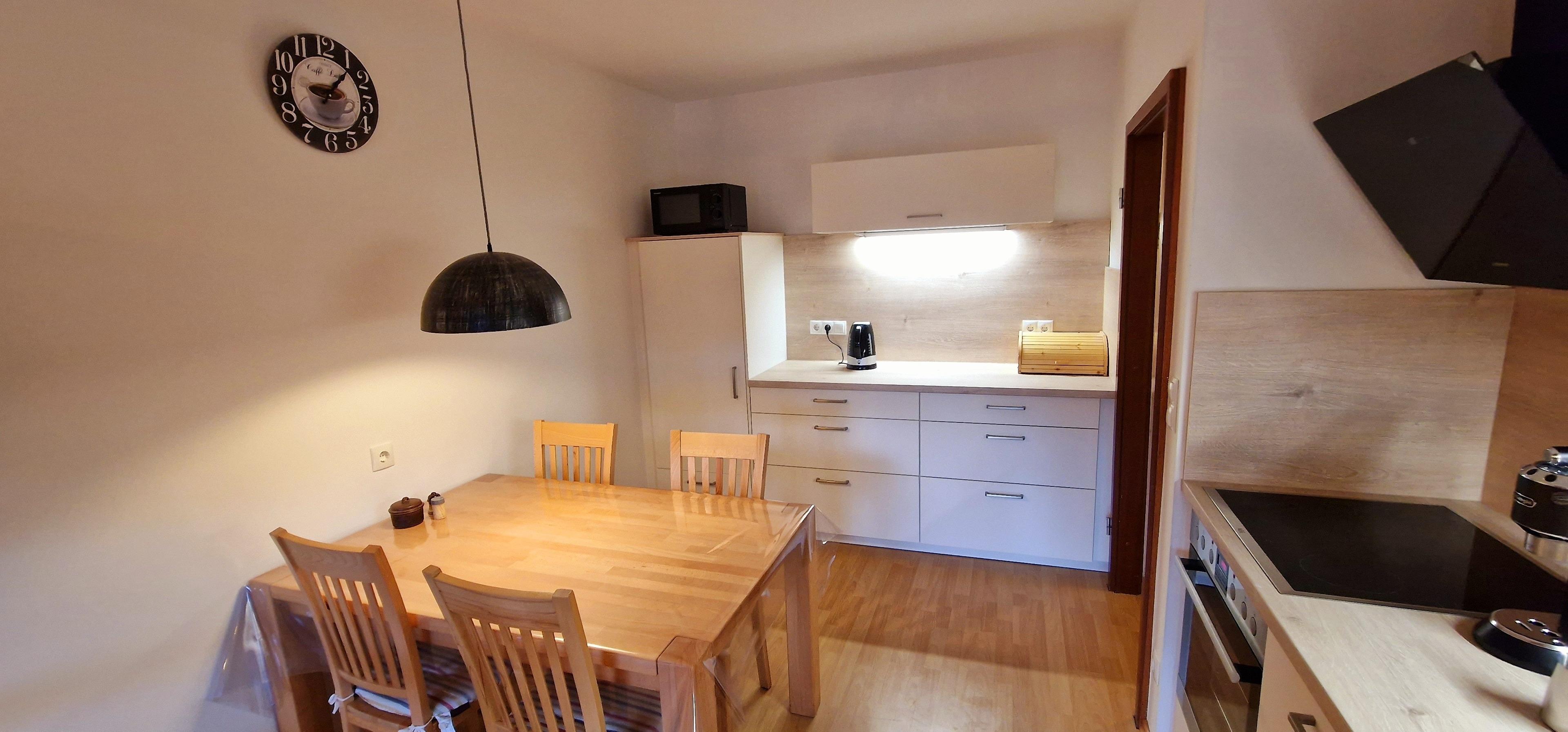 Außerdem besitzt die Wohnung einen Balkon bestückt mit Holzmöbeln zum Entspannen an der frischen Luft.